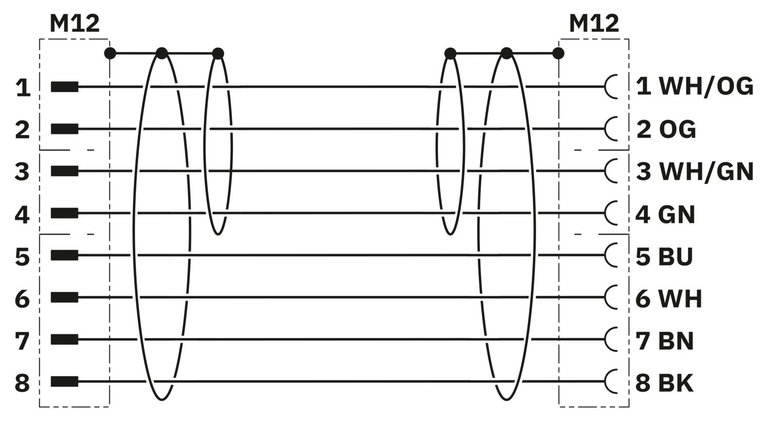 M12 Штекеры, угловой, 8-контактный, экранирован. (Advanced Shielding Technology), Кодирование: Y,