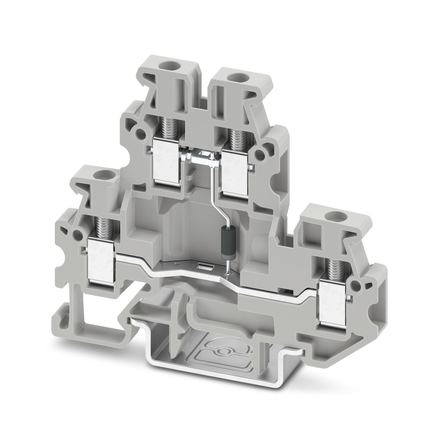 Клеммный блок, Максимальный ток определяется диодом. Встроено: диод BY133G, обратное напряжение: 1300 В, предельно допустимый продолжительный ток: 0,5 A., со встроенным диодом, номинальное напряжение: 500 В, номинальный ток: 0,5 A, тип подключения: Винтовые зажимы, Расчетное сечение: 2,5 мм2, cечение: 0,2 мм2 - 4 мм2, монтаж: NS 15, NS 35/7,5, NS 35/15, цвет: cерый
