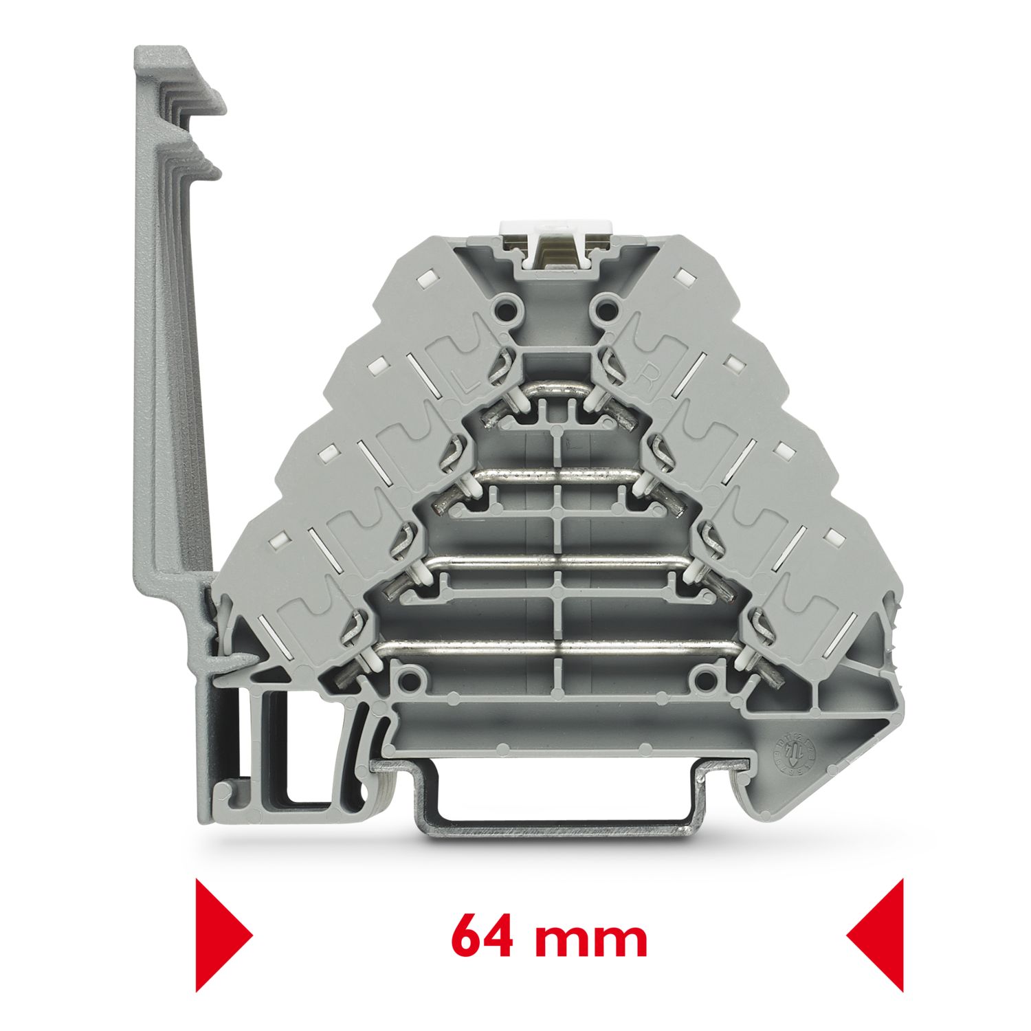 Шунтируемый распределитель потенциалов с возможностью подачи питания по линии до 6 мм²|Высокое качество контактирования благодаря технологии push-in в качестве замены для Wire-Wrap, Termi-Point, и т.д.|Расключение на узком пространстве без использования инструмента благодаря компактности
