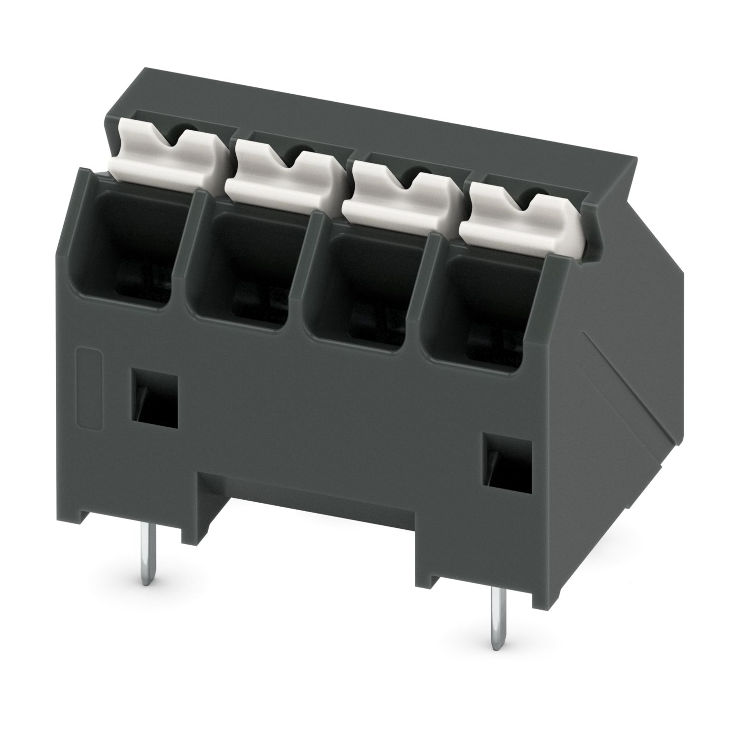 Клемма для монтажа на печатные платы, номинальный ток: 17,5 A, расчетное напряжение (III/2): 160 В, номинальное сечение: 1,5 мм2, количество рядов: 1, число контактов в ряду: 4, cемейство изделий: SPTA 1,5/..-THR, размер шага: 3,81 мм, тип подключения: Пружинный зажим Push-in, монтаж: сквозной монтаж / пайка волной припоя, направление подключения проводник/печатная плата: 45 °, цвет: черный, Расположение контактов: Линейное расположение выводов, Длина выводов [P]: 2,6 мм, количество паечных выводов на потенциал: 1, Форма упаковки: Лента шириной 32 мм
