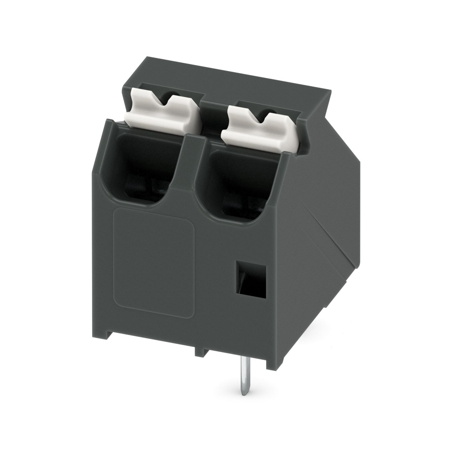 Клемма для монтажа на печатные платы, номинальный ток: 17,5 A, расчетное напряжение (III/2): 320 В, номинальное сечение: 1,5 мм2, количество рядов: 1, число контактов в ряду: 2, cемейство изделий: SPTA 1,5/..-THR, размер шага: 5,08 мм, тип подключения: Пружинный зажим Push-in, монтаж: сквозной монтаж / пайка волной припоя, направление подключения проводник/печатная плата: 45 °, цвет: черный, Расположение контактов: Линейное расположение выводов, Длина выводов [P]: 2,6 мм, количество паечных выводов на потенциал: 1, Форма упаковки: Лента шириной 32 мм
