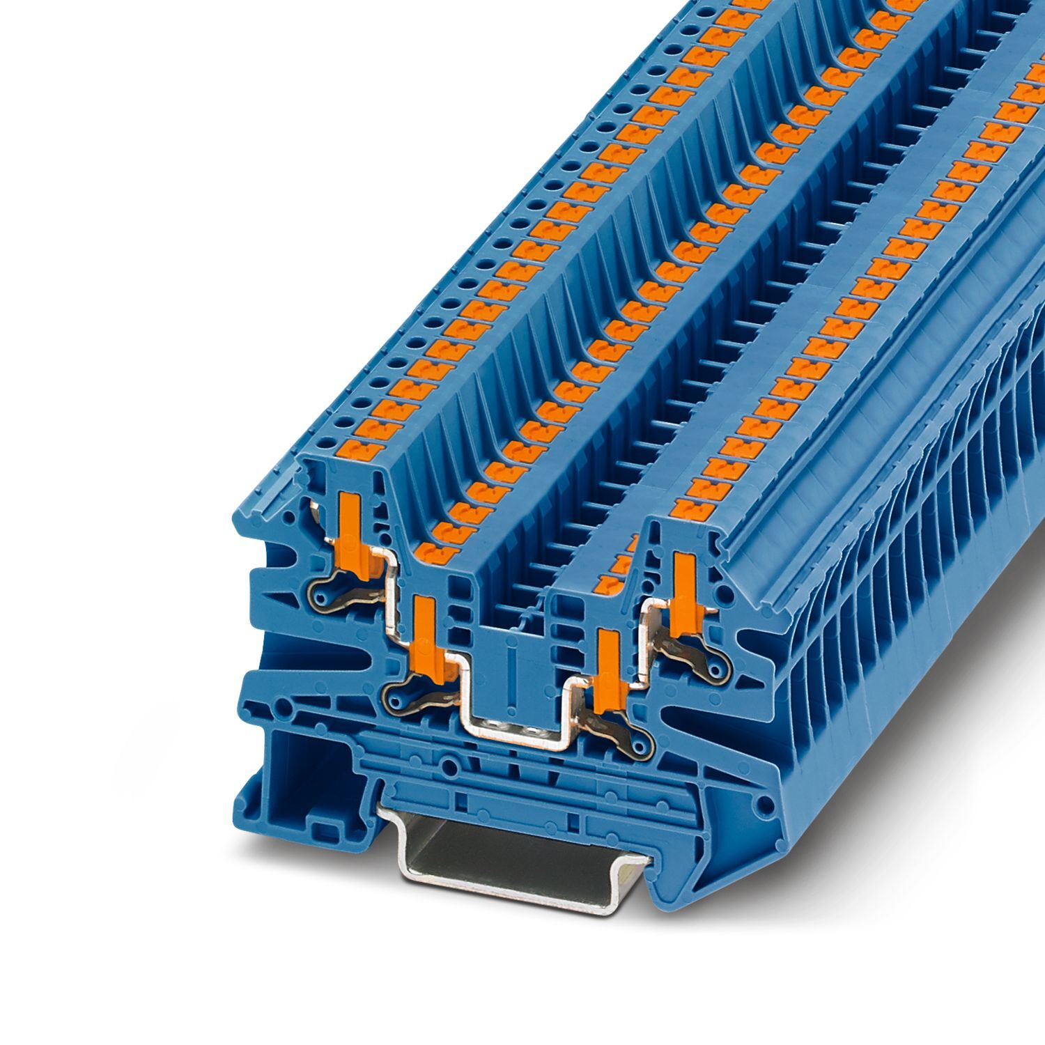 Проходные клеммы, номинальное напряжение: 800 В, номинальный ток: 24 A, количество точек подсоединения: 4, тип подключения: Зажимы Push-in, Расчетное сечение: 2,5 мм2, cечение: 0,14 мм2 - 4 мм2, тип монтажа: NS 35/7,5, NS 35/15, цвет: синий