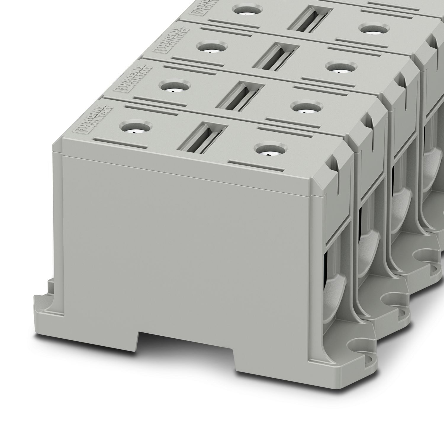Cиловая клемма, номинальное напряжение: 1000 В, номинальный ток: 380 A, количество точек подсоединения: 2, полюсов: 1, тип подключения: Винтовые зажимы, Расчетное сечение: 240 мм2, cечение: 35 мм2 - 240 мм2, Расчетное сечение: 240 мм2, cечение: 35 мм2 - 240 мм2, тип монтажа: Резьбовой монтаж, цвет: cерый