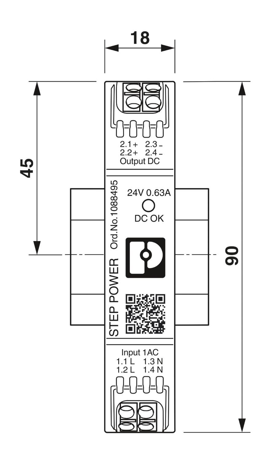 Импульсный источник питания, STEP POWER, Зажимы Push-in, На монтажной рейке и прямой монтаж, вход: 1-фазный, выход: 24 В DC / 0,63 A