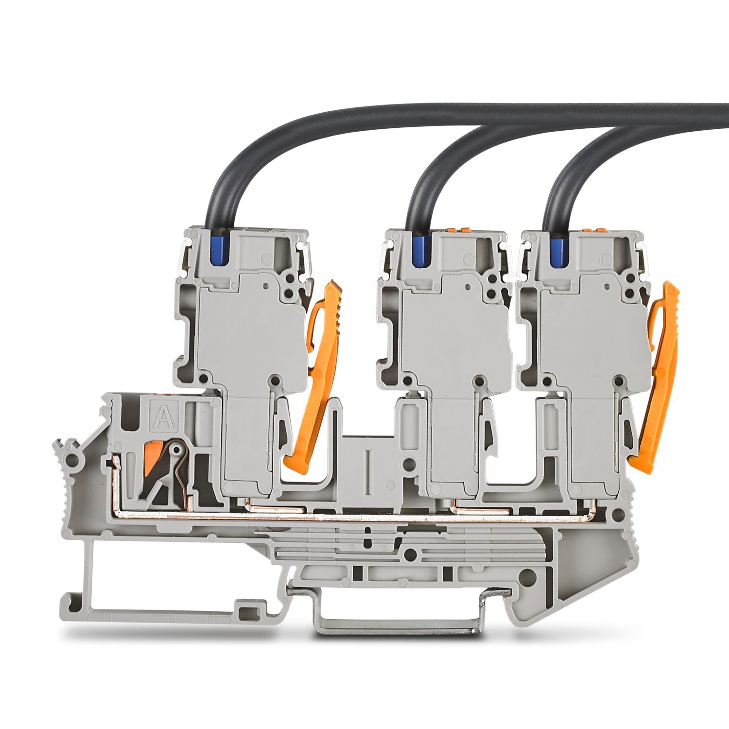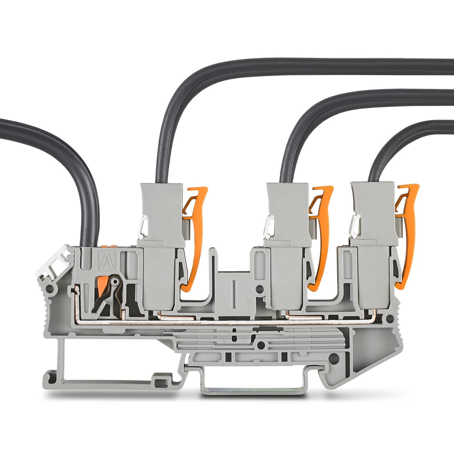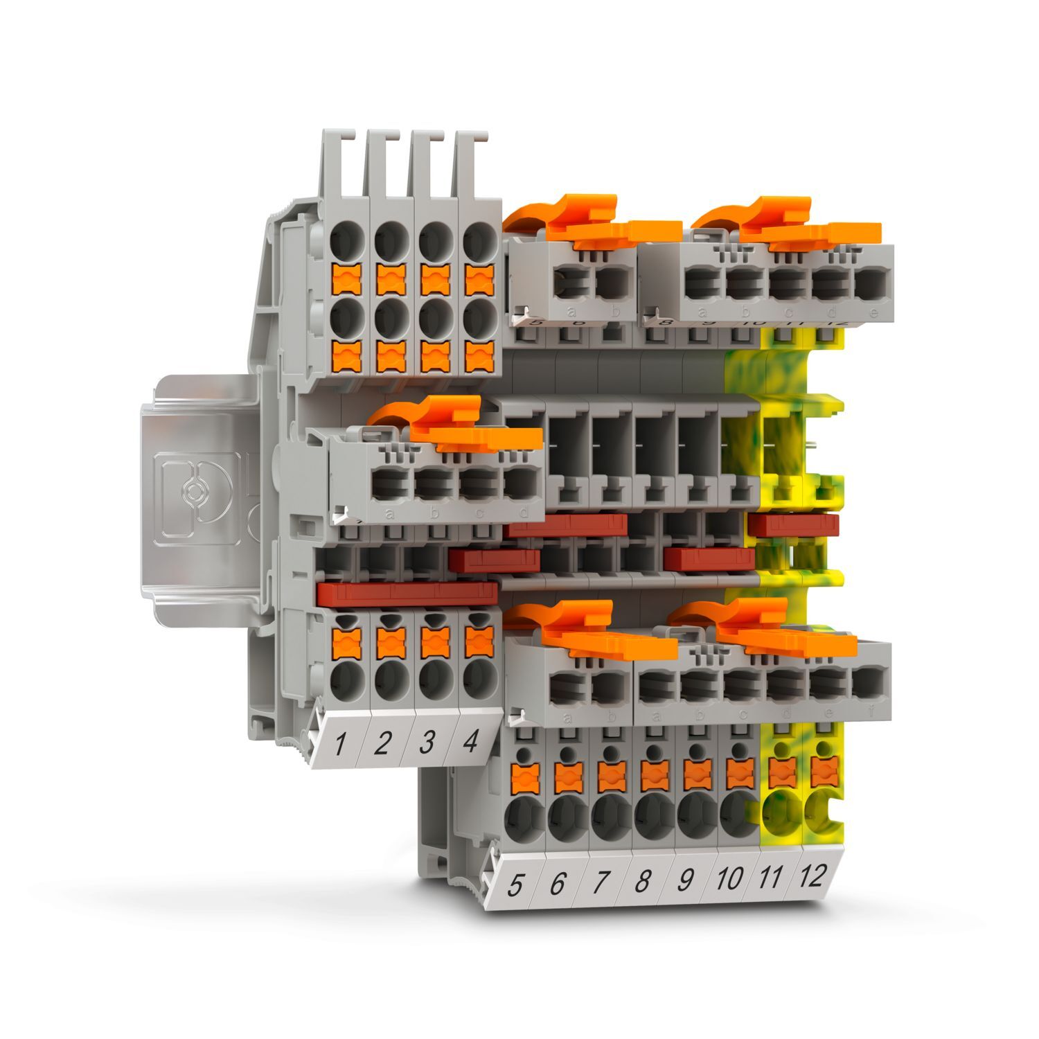 Идеально подходит в качестве штекерной клеммы кольцевой сети для распределения напряжения или сигнала в модульном производстве комплектного оборудования.|Зажим push-in 4 мм² можно использовать в качестве разъема для подачи питания.|Использование штекерных соединителей push-in COMBI 4 мм² (32 A) или корпусов штекерного разъема обжимных контактов CP 4 (10 A) на выбор.|Возможно применение автоматически изготовленных кабельных жгутов.|Принадлежности для кодирования серии COMBI предотвращают ошибки при вставлении или перепутывание при использовании нескольких штекеров.|Высокая вибростойкость с опциональными принадлежностями для фиксации и разгрузки от натяжения.|Двойной ряд шунтирования для дополнительных распределительных клемм или контрольных принадлежностей.|Возможна поставка клеммного блока PE той же формы