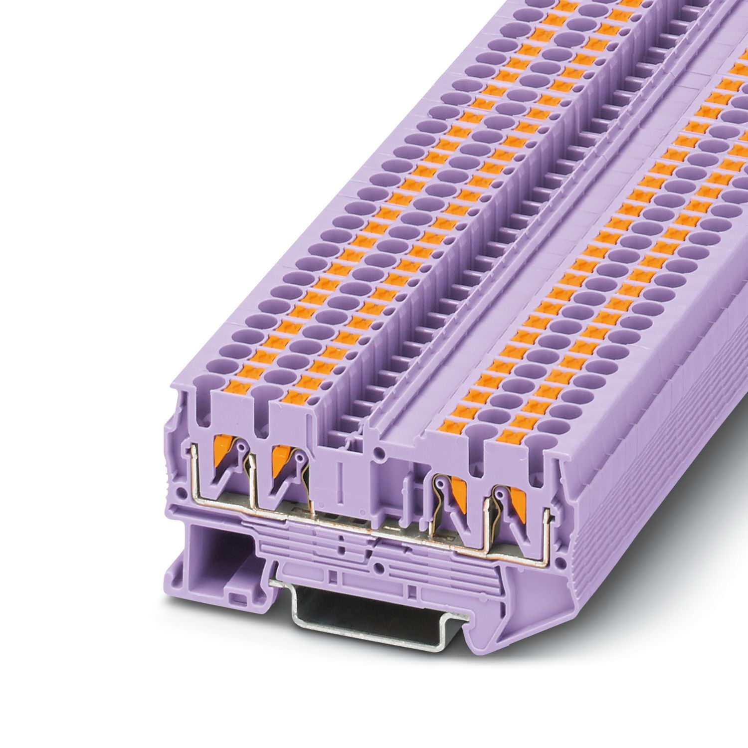 Проходные клеммы, номинальное напряжение: 800 В, номинальный ток: 24 A, количество точек подсоединения: 4, тип подключения: Зажимы Push-in, Расчетное сечение: 2,5 мм2, cечение: 0,14 мм2 - 4 мм2, тип монтажа: NS 35/7,5, NS 35/15, цвет: фиолетовый