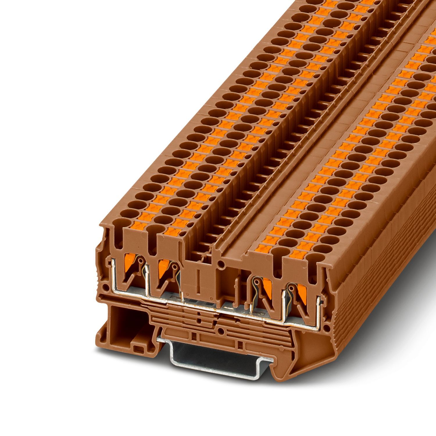 Проходные клеммы, номинальное напряжение: 800 В, номинальный ток: 24 A, количество точек подсоединения: 4, тип подключения: Зажимы Push-in, Расчетное сечение: 2,5 мм2, cечение: 0,14 мм2 - 4 мм2, тип монтажа: NS 35/7,5, NS 35/15, цвет: коричневый