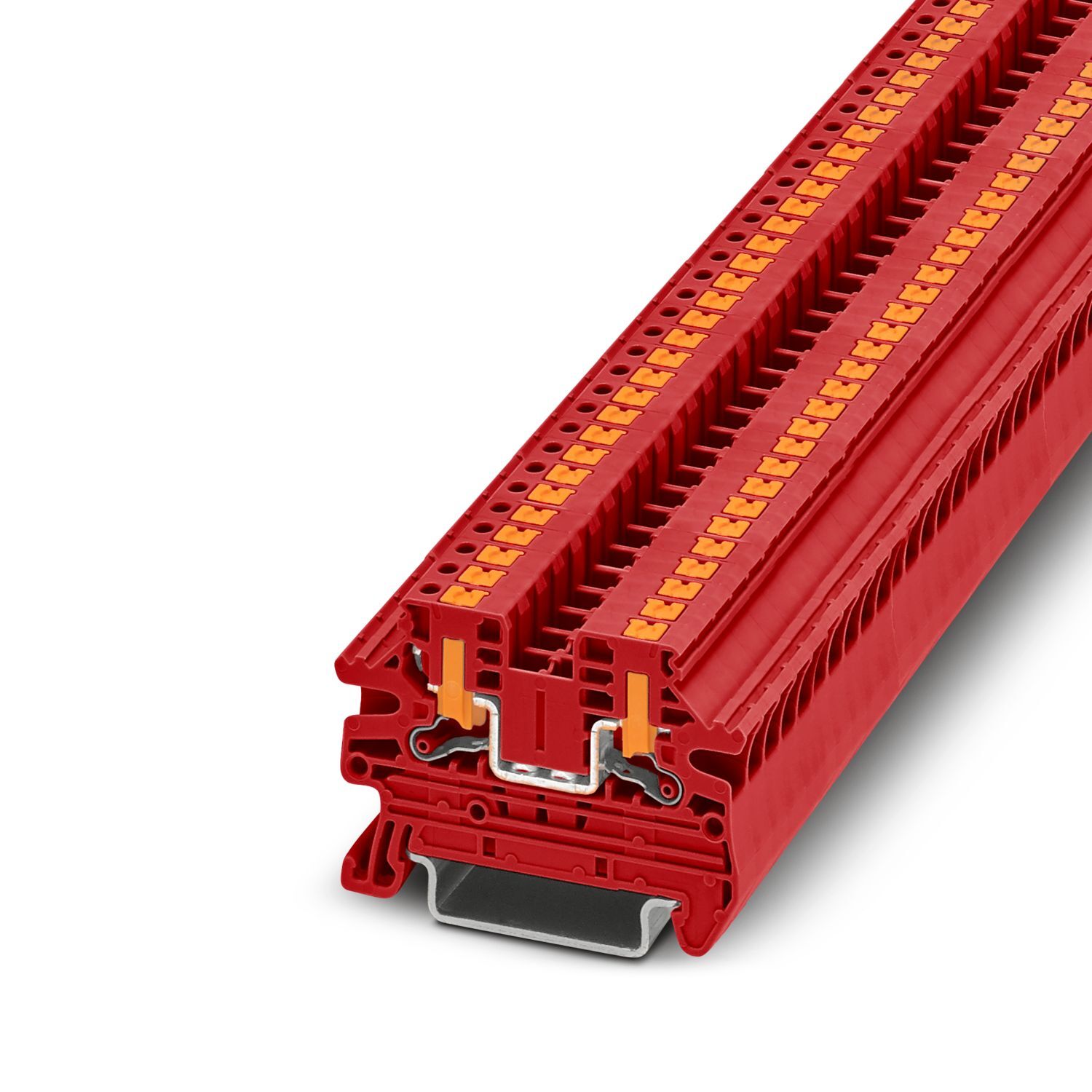 Проходные клеммы, номинальное напряжение: 800 В, номинальный ток: 24 A, количество точек подсоединения: 2, полюсов: 1, тип подключения: Зажимы Push-in, Расчетное сечение: 2,5 мм2, cечение: 0,14 мм2 - 4 мм2, тип монтажа: NS 35/7,5, NS 35/15, цвет: красный
