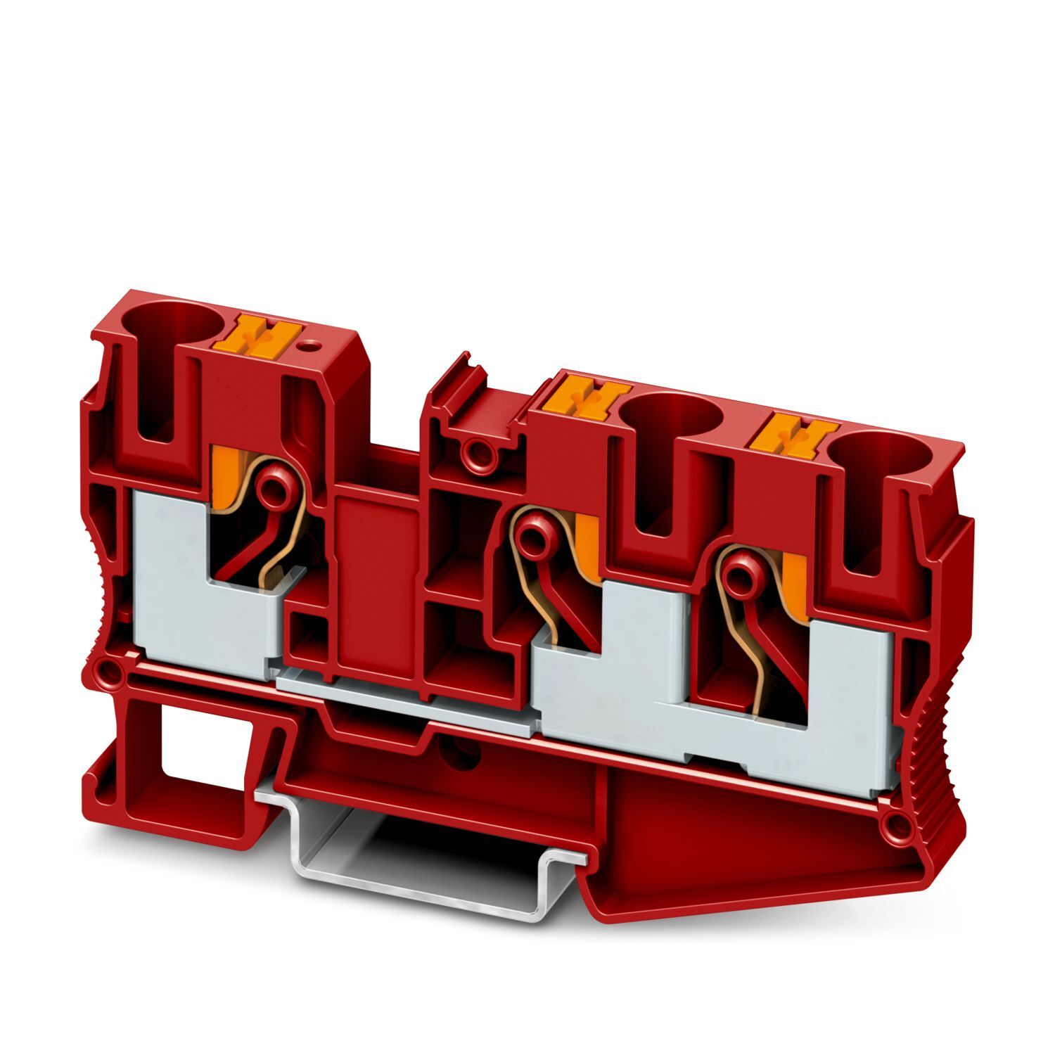Проходные клеммы, номинальное напряжение: 1000 В, номинальный ток: 57 A, количество точек подсоединения: 3, тип подключения: Зажимы Push-in, Расчетное сечение: 10 мм2, cечение: 0,5 мм2 - 16 мм2, тип монтажа: NS 35/7,5, NS 35/15, цвет: красный