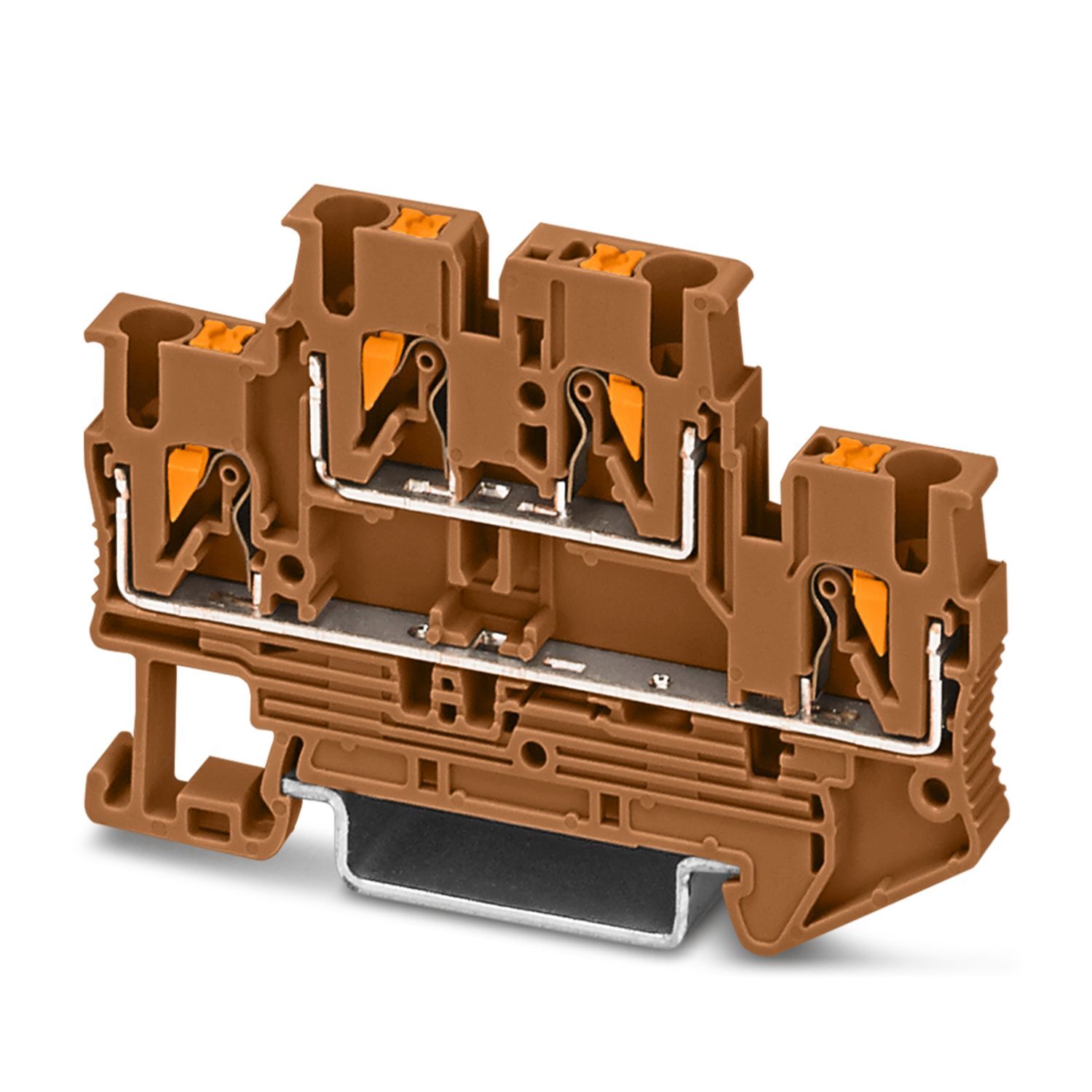 Двухъярусные клеммы, номинальное напряжение: 500 В, номинальный ток: 22 A, тип подключения: Зажимы Push-in, 1. и 2-ий ярус, Расчетное сечение: 2,5 мм2, cечение: 0,14 мм2 - 4 мм2, тип монтажа: NS 35/7,5, NS 35/15, цвет: коричневый