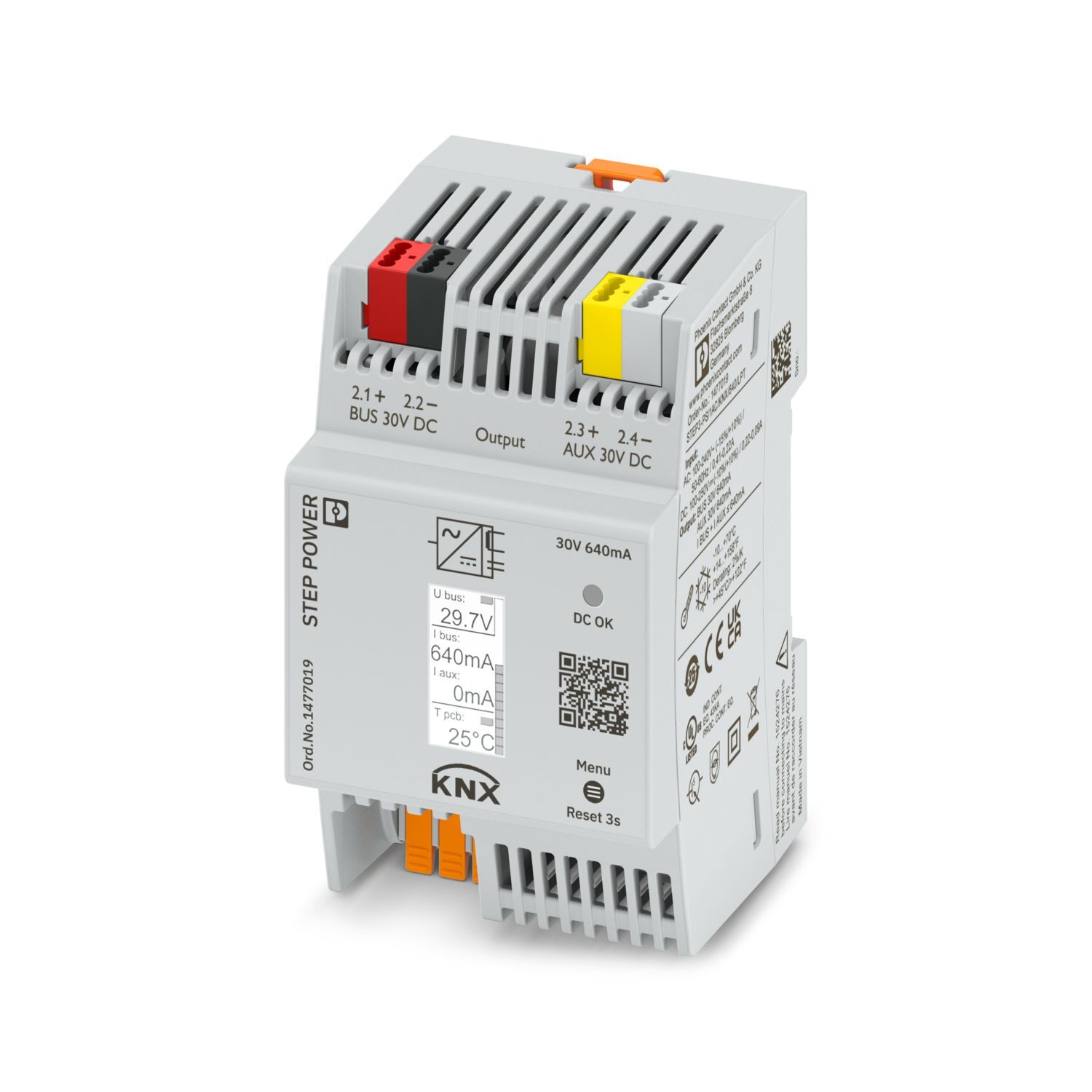 Источник питания шины с регулированием в первичной цепи, STEP POWER, Рычажный зажим push-in, На монтажной рейке и прямой монтаж, вход: 1-фазный, выход: 30 В DC / 640 мА