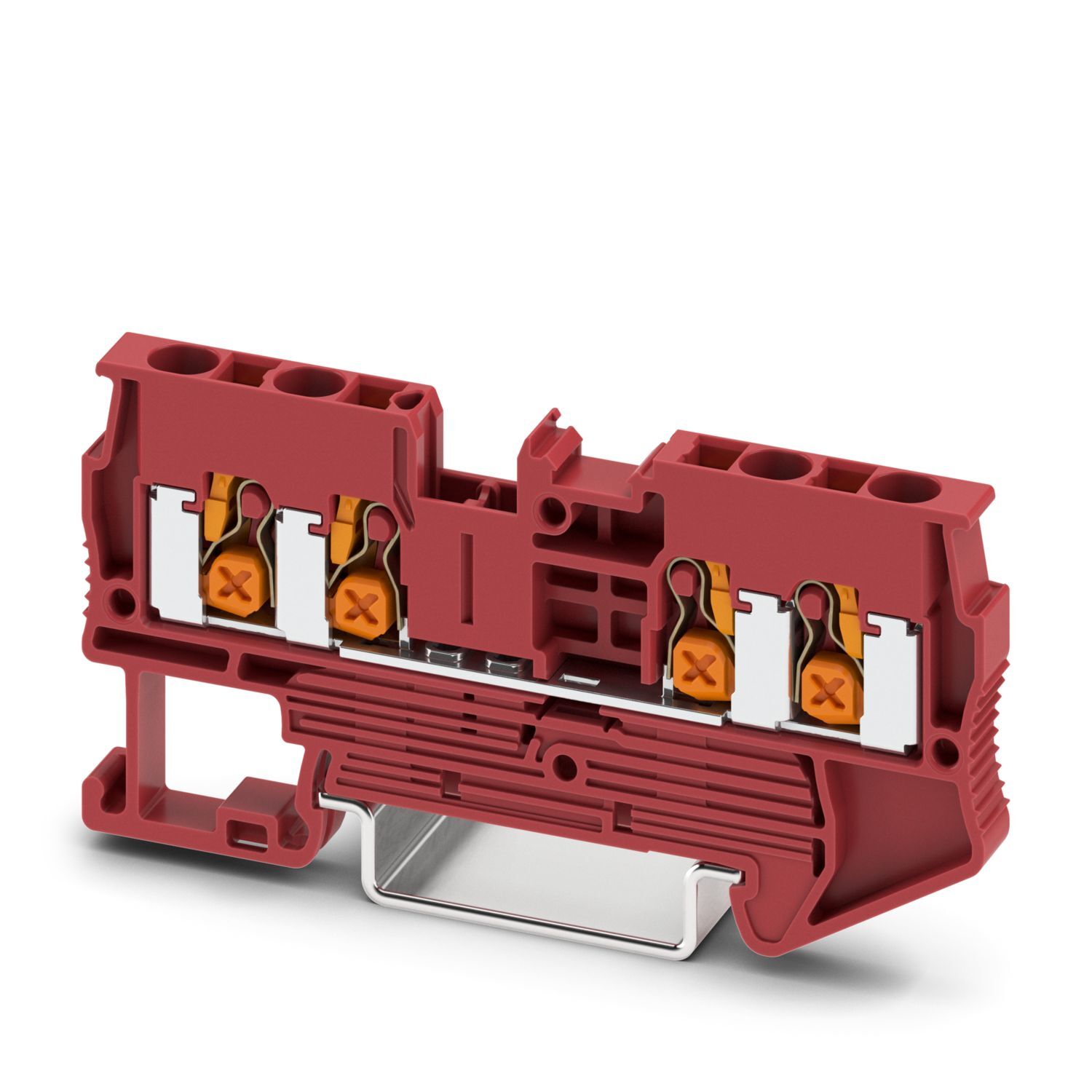 Проходные клеммы, номинальное напряжение: 800 В, номинальный ток: 24 A, количество точек подсоединения: 4, полюсов: 1, тип подключения: Зажим push-X, Расчетное сечение: 2,5 мм2, cечение: 0,5 мм2 - 4 мм2, тип монтажа: NS 35/7,5, NS 35/15, цвет: красный