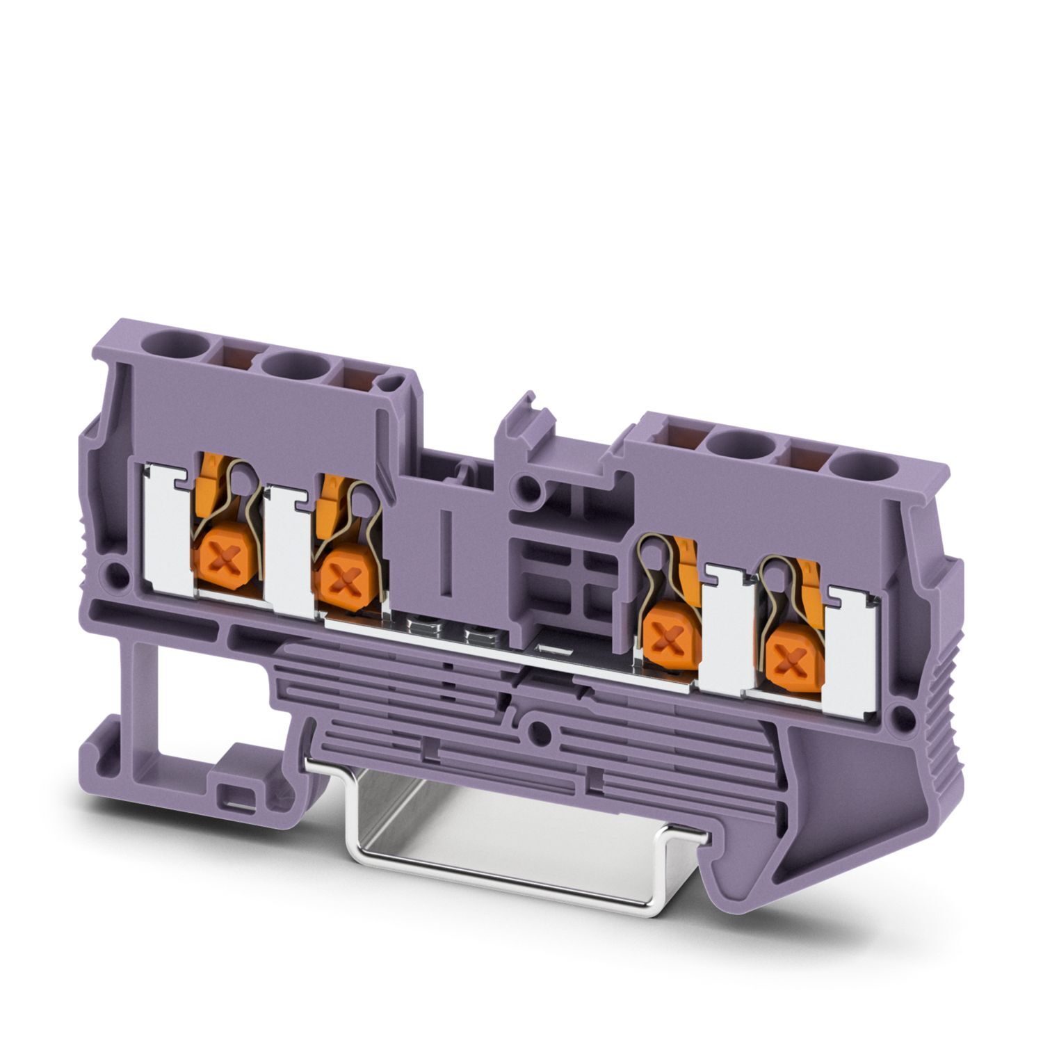 Проходные клеммы, номинальное напряжение: 800 В, номинальный ток: 24 A, количество точек подсоединения: 4, полюсов: 1, тип подключения: Зажим push-X, Расчетное сечение: 2,5 мм2, cечение: 0,5 мм2 - 4 мм2, тип монтажа: NS 35/7,5, NS 35/15, цвет: фиолетовый