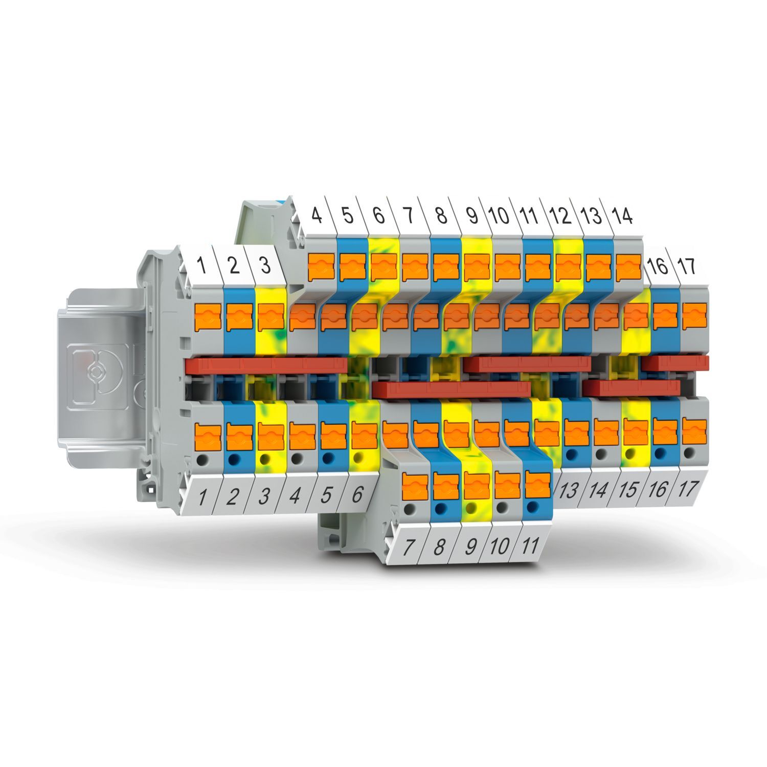 Наглядная разводка благодаря боковому вводу проводов|Компактная конструкция позволяет выполнять кабельную разводку в ограниченном пространстве.|Соединительные зажимы push-in отличаются стандартными характеристиками системы CLIPLINE complete|Возможность проведения тестирования с помощью функционального канала, а также контрольного гнезда, которым оснащены все клеммы