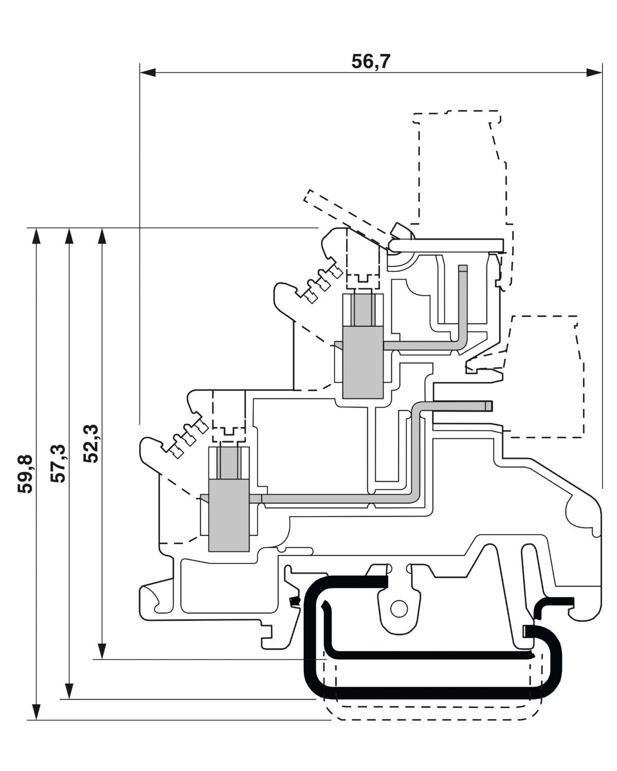 Двухъярусные клеммы, номинальное напряжение: 250 В, номинальный ток: 12 A, количество точек подсоединения: 4, полюсов: 1, тип подключения: Винтовое / штекерное подключение, 1. или 2-ий ярус, подключение слева, cечение: 0,2 мм2 - 4 мм2, тип монтажа: NS 35/7,5, NS 35/15, NS 32, цвет: cерый