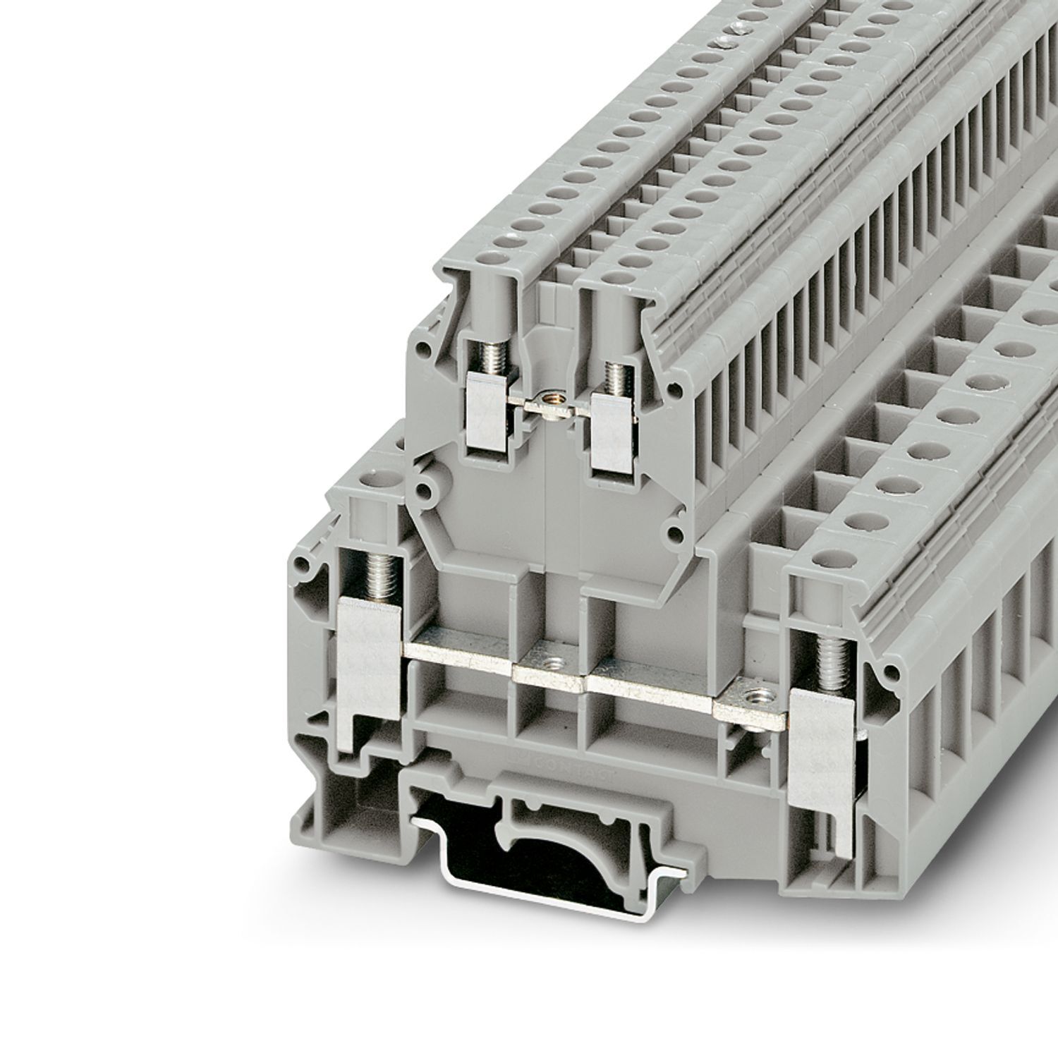 Двухъярусные клеммы, номинальное напряжение: 500 В, номинальный ток: 57 A, тип подключения: Винтовые зажимы, 1. ярус, Расчетное сечение: 10 мм2, cечение: 0,5 мм2 - 16 мм2, тип подключения: Винтовые зажимы, 2. ярус, Расчетное сечение: 2,5 мм2, cечение: 0,2 мм2 - 4 мм2, тип монтажа: NS 35/7,5, NS 35/15, NS 32, цвет: cерый