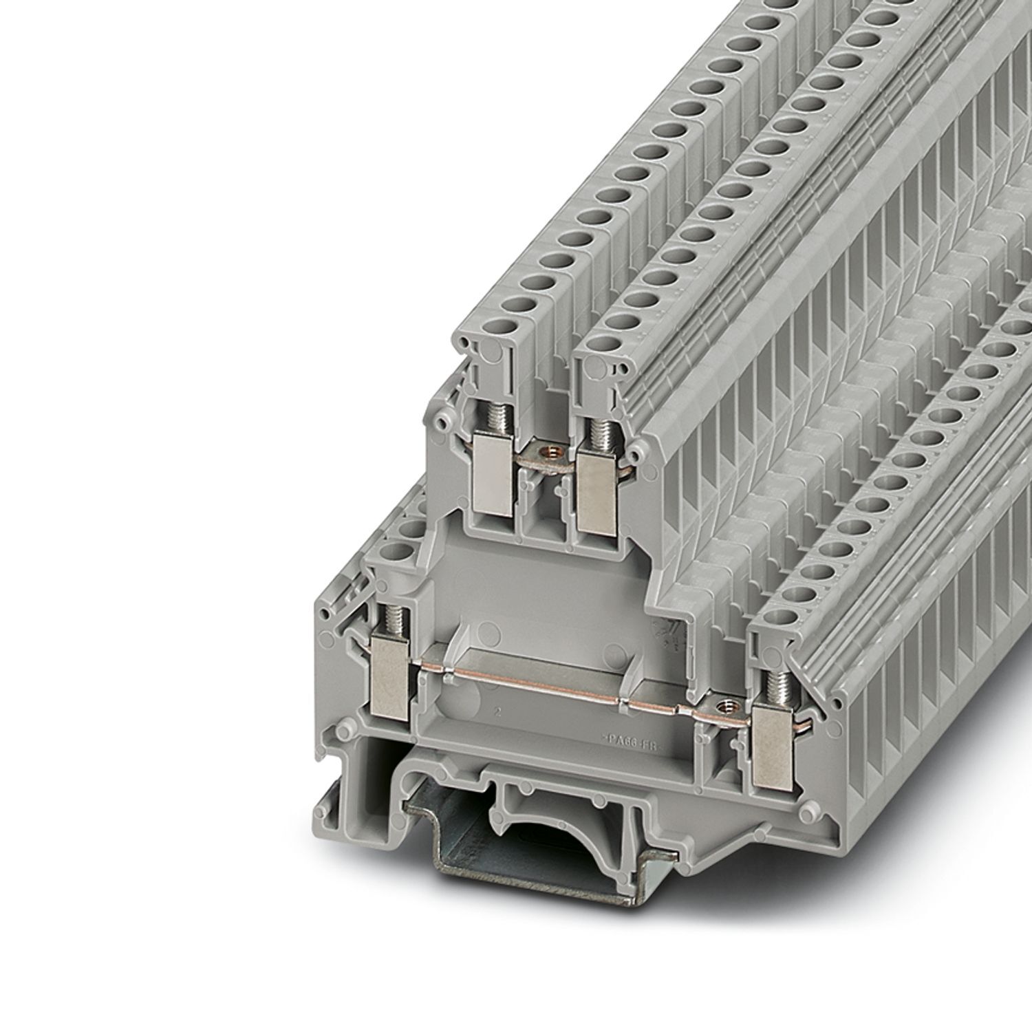 Двухъярусные клеммы, номинальное напряжение: 500 В, номинальный ток: 32 A, тип подключения: Винтовые зажимы, 1. и 2-ий ярус, Расчетное сечение: 4 мм2, cечение: 0,2 мм2 - 4 мм2, тип монтажа: NS 35/7,5, NS 35/15, NS 32, цвет: cерый