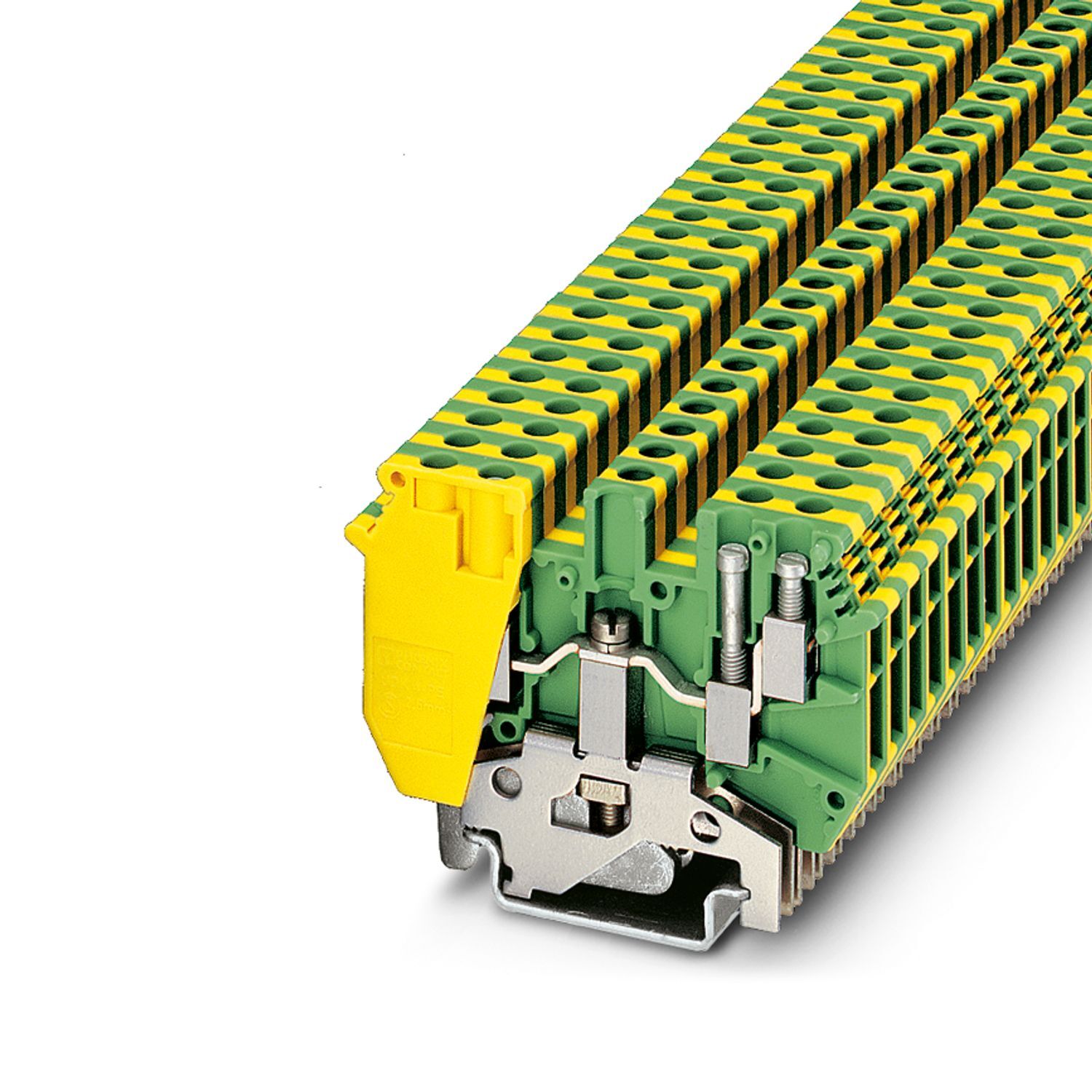 Заземляющая клемма, двойным разъемом на каждой стороне, количество точек подсоединения: 4, полюсов: 1, тип подключения: Винтовые зажимы, 1. ярус, cечение: 0,2 мм2 - 6 мм2, тип крепления: Основание из полиэтилена с крепежным винтом, M3, тип монтажа: NS 35/7,5, NS 35/15, NS 32, цвет: желто-зел.