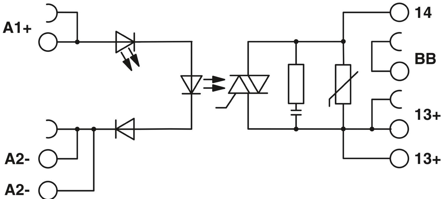 PLC-INTERFACE для функций вывода, состоит из основной клеммы PLC-BSC.../ACT с винтовым зажимом и интегрированным миниатюрным полупроводниковым реле, для монтажной рейки NS 35/7,5, 1 замыкающий контакт, вход: 24 В DC, выход: 24-253 В AC/2,4 A