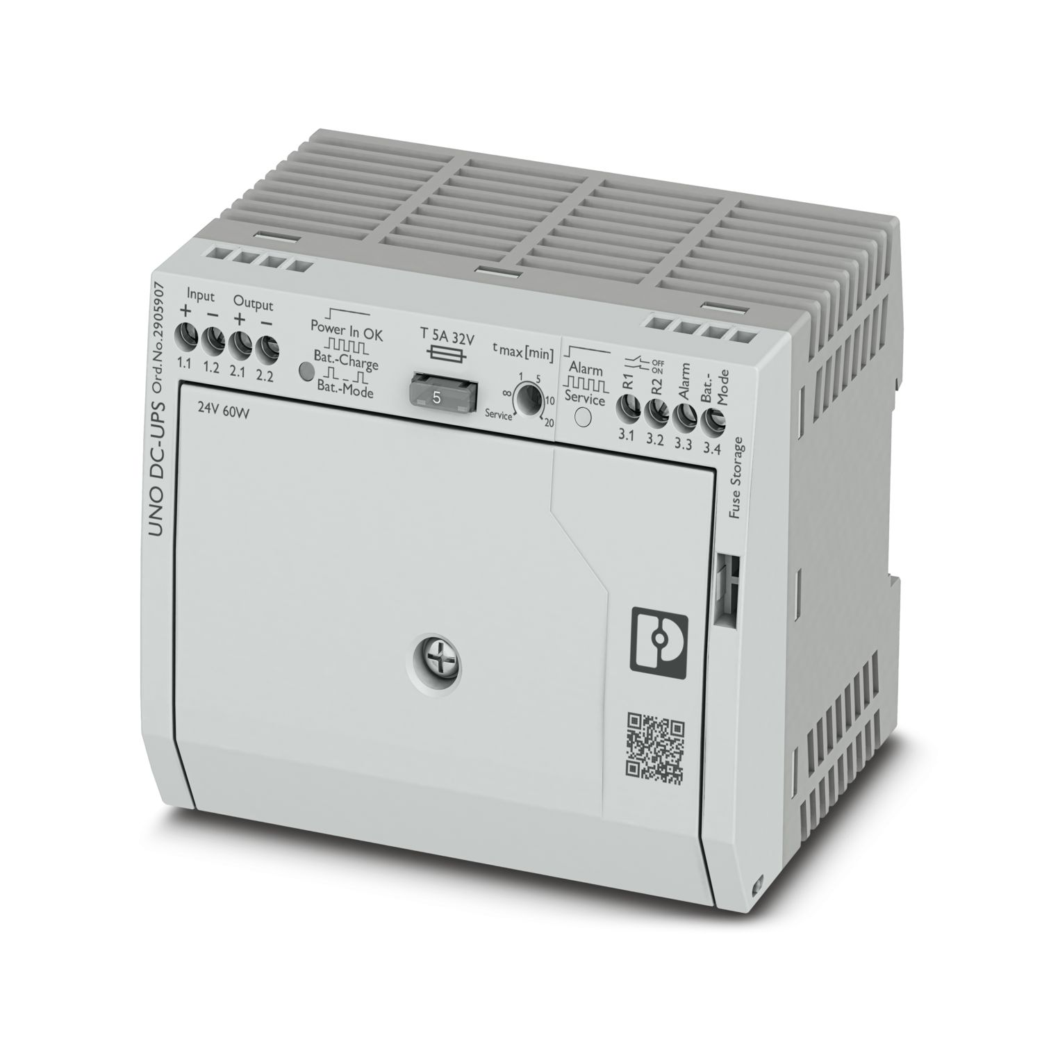 Источник бесперебойного питания, UNO-UPS/24DC/24DC/60W, Источник бесперебойного питания со встроенным аккумулятором, свинцовый AGM, технология VRLA, 24 В DC, 2x 0,8 Ач., Тип подключения: Винтовые зажимы, Номинальное напряжение: 24 В DC, Тип монтажа: Монтажная рейка: 35 мм