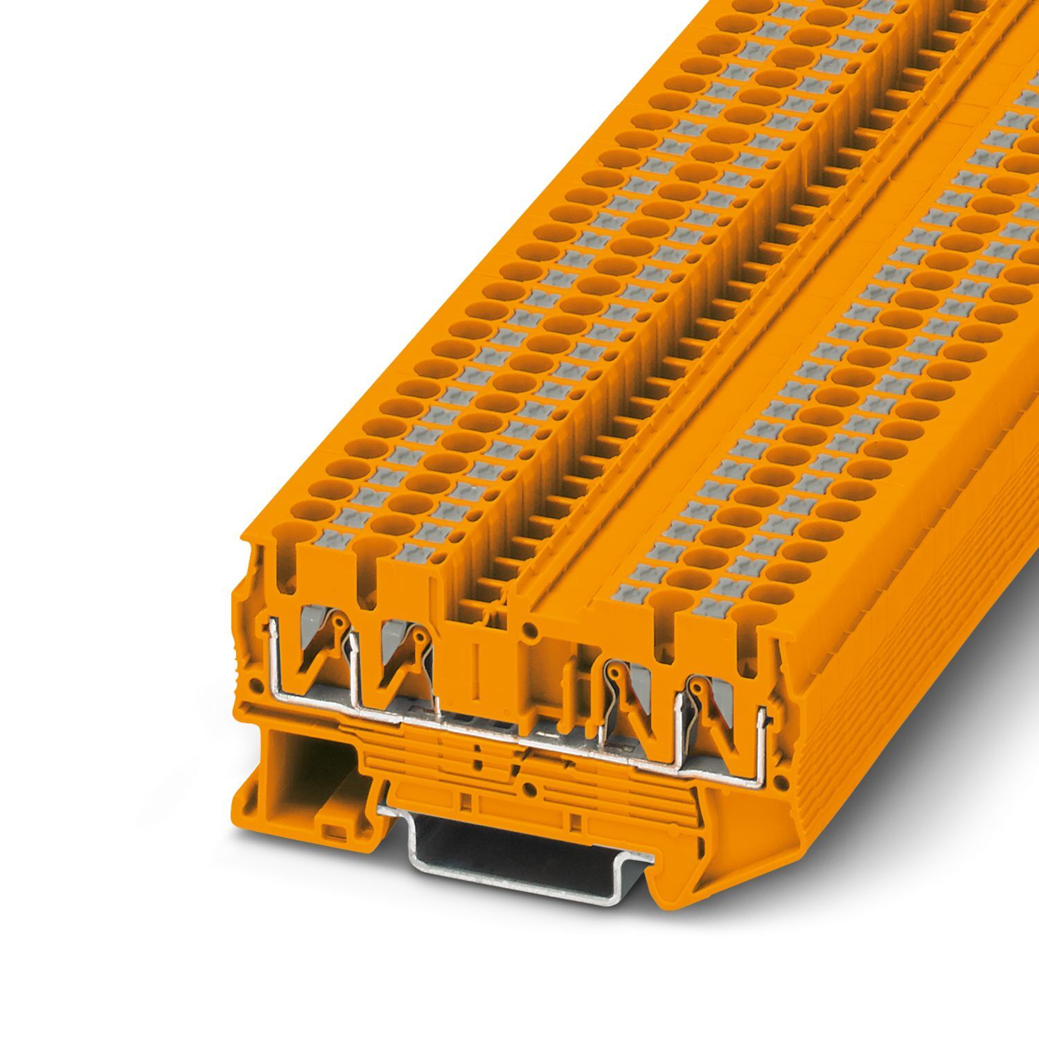 Проходные клеммы, номинальное напряжение: 800 В, номинальный ток: 24 A, количество точек подсоединения: 4, тип подключения: Зажимы Push-in, Расчетное сечение: 2,5 мм2, cечение: 0,14 мм2 - 4 мм2, тип монтажа: NS 35/7,5, NS 35/15, цвет: oранжевый