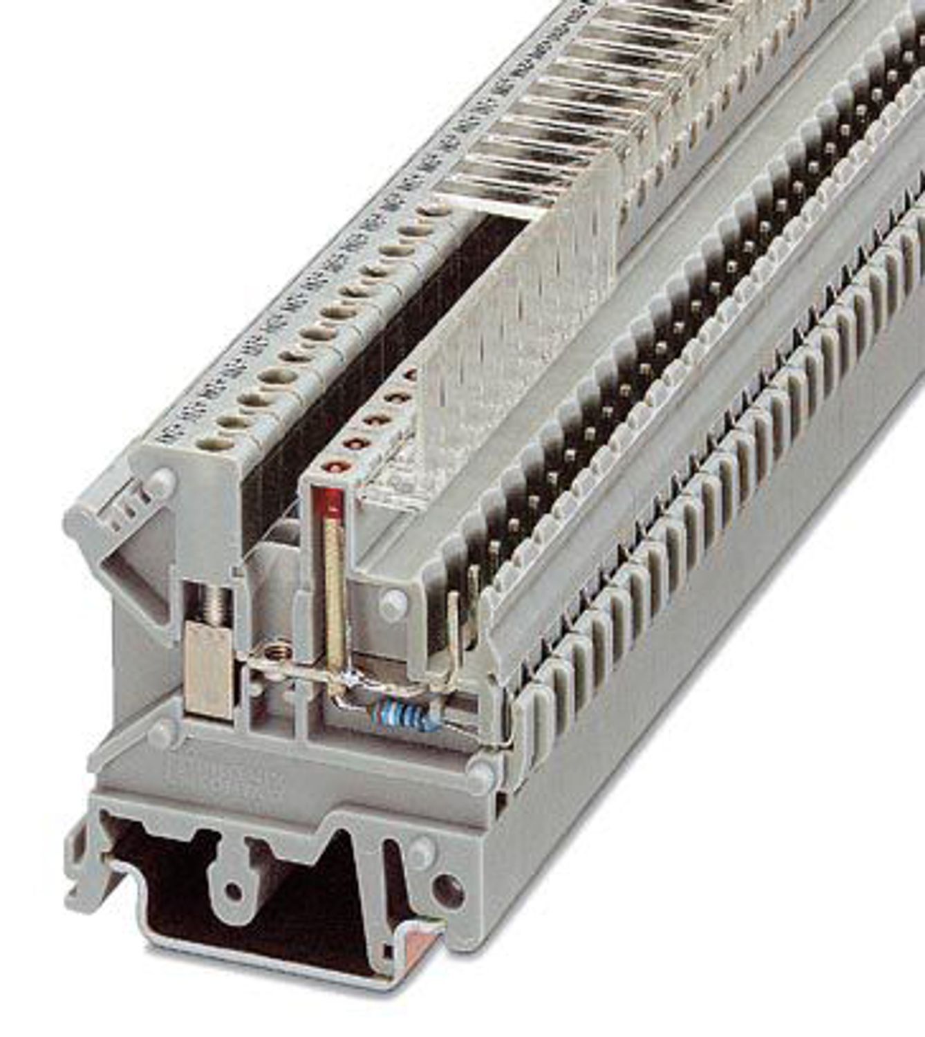 Проходные клеммы, номинальное напряжение: 250 В, номинальный ток: 12 A, количество точек подсоединения: 2, полюсов: 1, тип подключения: Винтовое / штекерное подключение, 1. ярус, подключение слева, cечение: 0,2 мм2 - 4 мм2, тип монтажа: NS 32, NS 35/15, NS 35/7,5, цвет: cерый