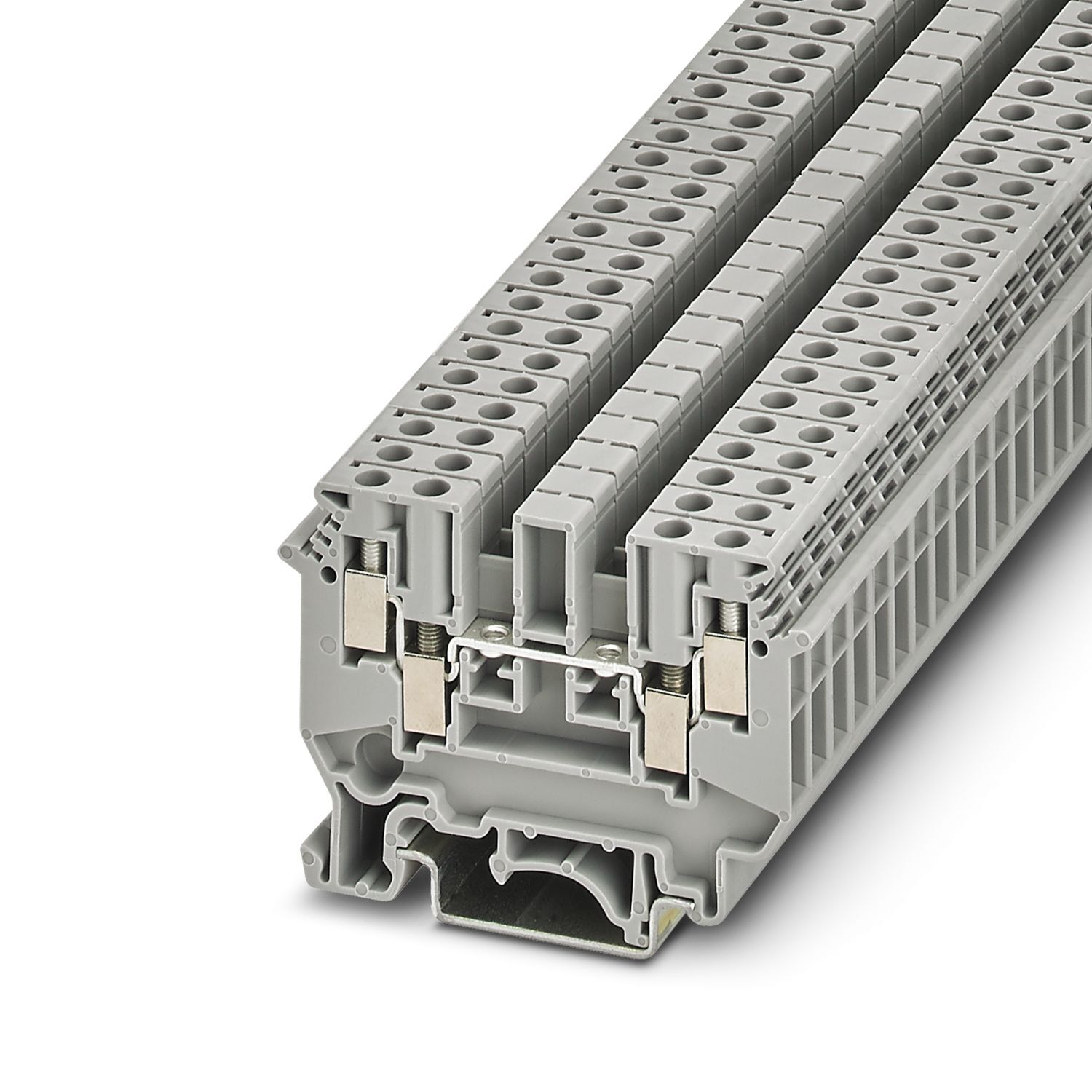 1-ярусная клемма с двусторонним двойным подключением, винтовое крепление контрольного гнезда, сечение: 0,2 - 2,5 мм2, AWG: 30 - 10, ширина: 6,2 мм, цвет: серый