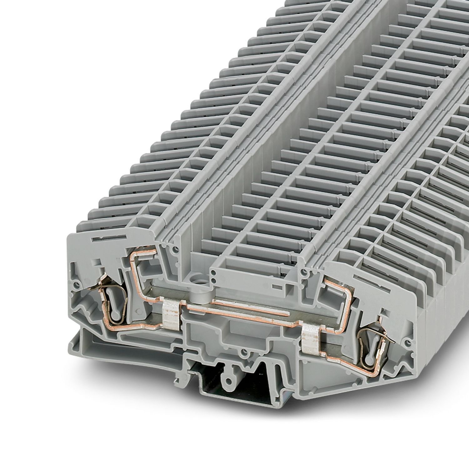 Проходные клеммы, номинальное напряжение: 400 В, номинальный ток: 41 A, тип подключения: Пружинный зажим, Расчетное сечение: 6 мм2, cечение: 0,2 мм2 - 10 мм2, монтаж: NS 35/7,5, NS 35/15, цвет: cерый