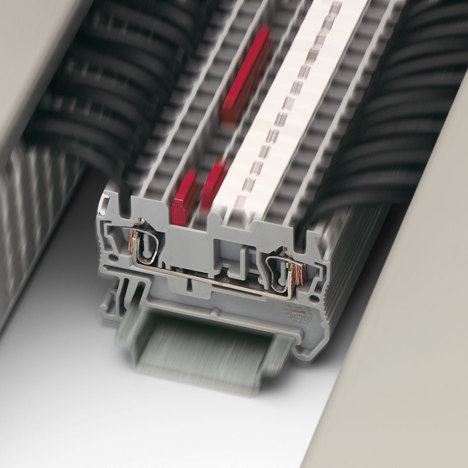 Сплошной двойной функциональный канал обеспечивает возможность быстрого разветвления цепей и установки принадлежностей для тестирования|Компактная конструкция и фронтальный разъем обеспечивают возможность экономии места и удобного проведения разводки в условиях ограниченного пространства|Большой корпус позволяет подключать провода номинального поперечного сечения с кабельными наконечниками и пластиковыми фланцами|Опробовано для железнодорожного транспорта