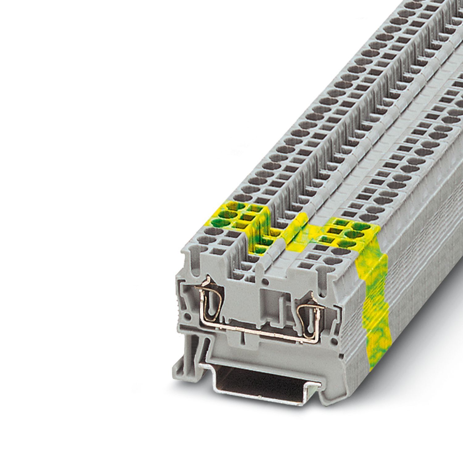 Заземляющий клеммный модуль с пружинными зажимами, количество точек подсоединения: 2, тип подключения: Пружинный зажим, Расчетное сечение: 2,5 мм2, cечение: 0,08 мм2 - 4 мм2, тип монтажа: NS 35/7,5, NS 35/15, цвет: желто-зел.
