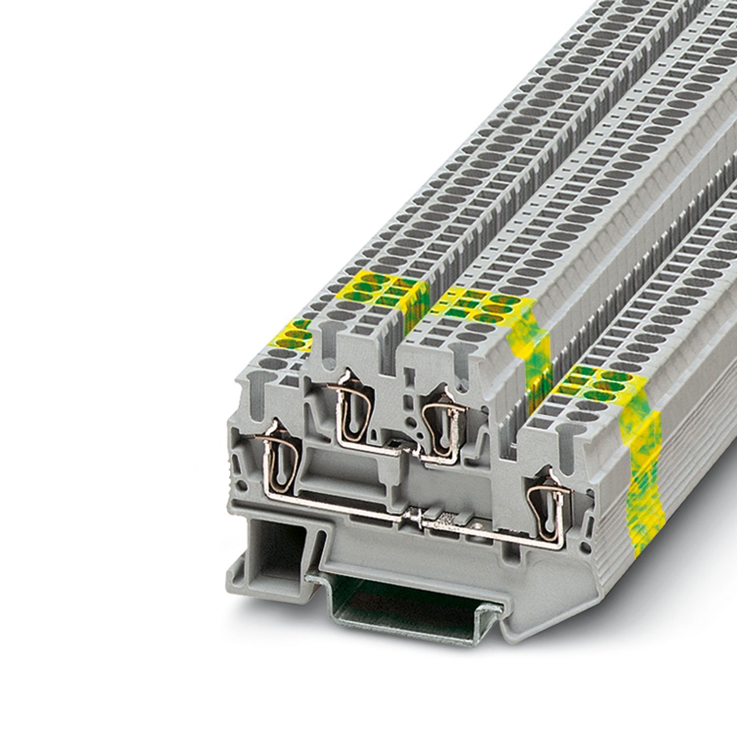 Двухъярусная пружинная клемма, с потенциальным разъемом, номинальное напряжение: 500 В, номинальный ток: 17,5 A, тип подключения: Пружинный зажим, 1. и 2-ий ярус, Расчетное сечение: 1,5 мм2, cечение: 0,08 мм2 - 1,5 мм2, тип монтажа: NS 35/7,5, NS 35/15, цвет: cерый