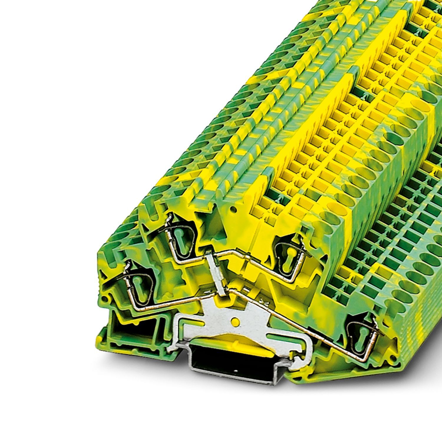 Двухъярусная заземляющая клемма, количество точек подсоединения: 4, тип подключения: Пружинный зажим, 1. и 2-ий ярус, cечение: 0,08 мм2 - 6 мм2, тип монтажа: NS 35/7,5, NS 35/15, цвет: желто-зел.
