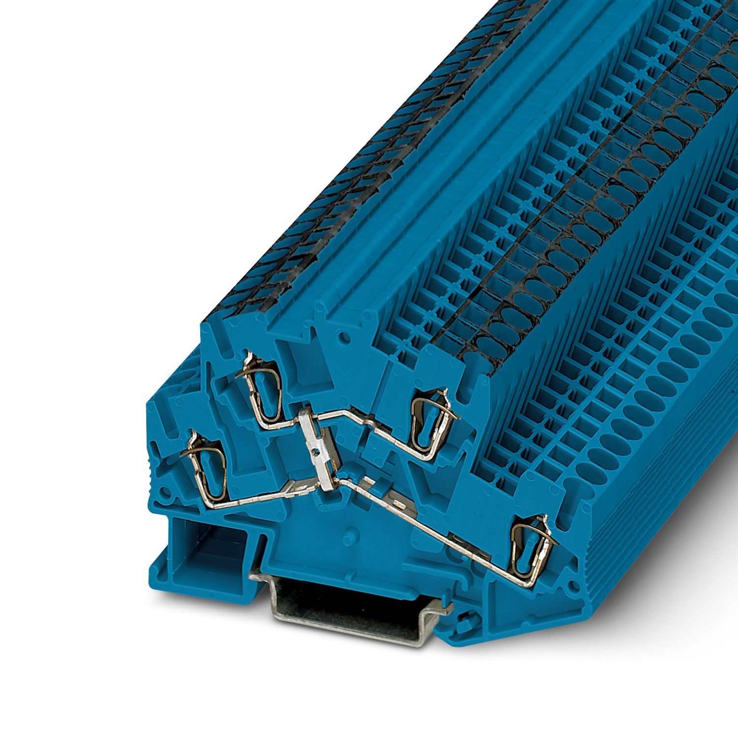 Двухъярусные клеммы, с потенциальным разъемом, номинальное напряжение: 500 В, номинальный ток: 22 A, тип подключения: Пружинный зажим, 1. и 2-ий ярус, Расчетное сечение: 2,5 мм2, cечение: 0,08 мм2 - 4 мм2, тип монтажа: NS 35/7,5, NS 35/15, цвет: синий