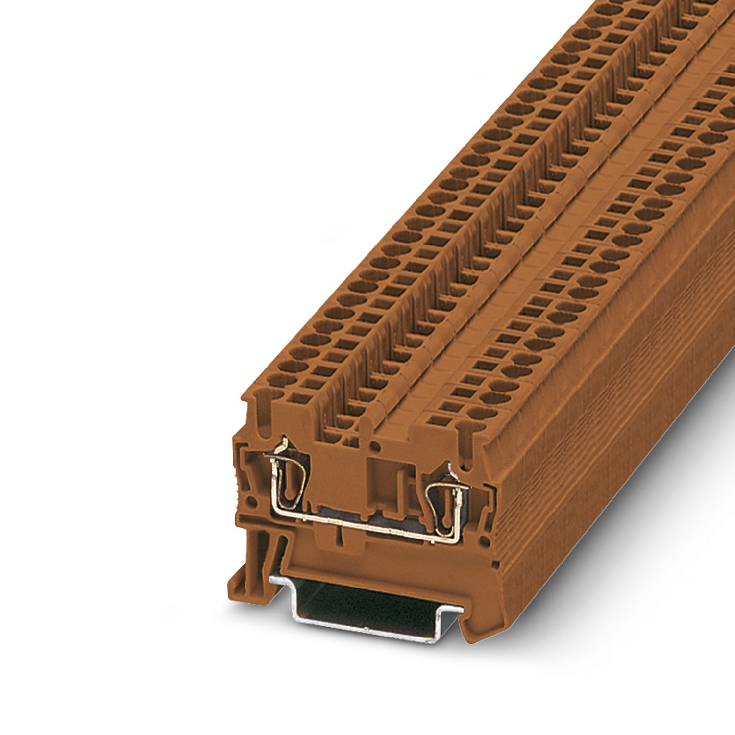 Проходные клеммы, тип соединения: пружинное, поперечное сечение: 0,08 mm2 - 4 mm2, сечение провода AWG: 28-12, ширина: 5,2 мм, цвет: коричневый, способ монтажа: на рейках NS 35/7,5, NS 35/15
