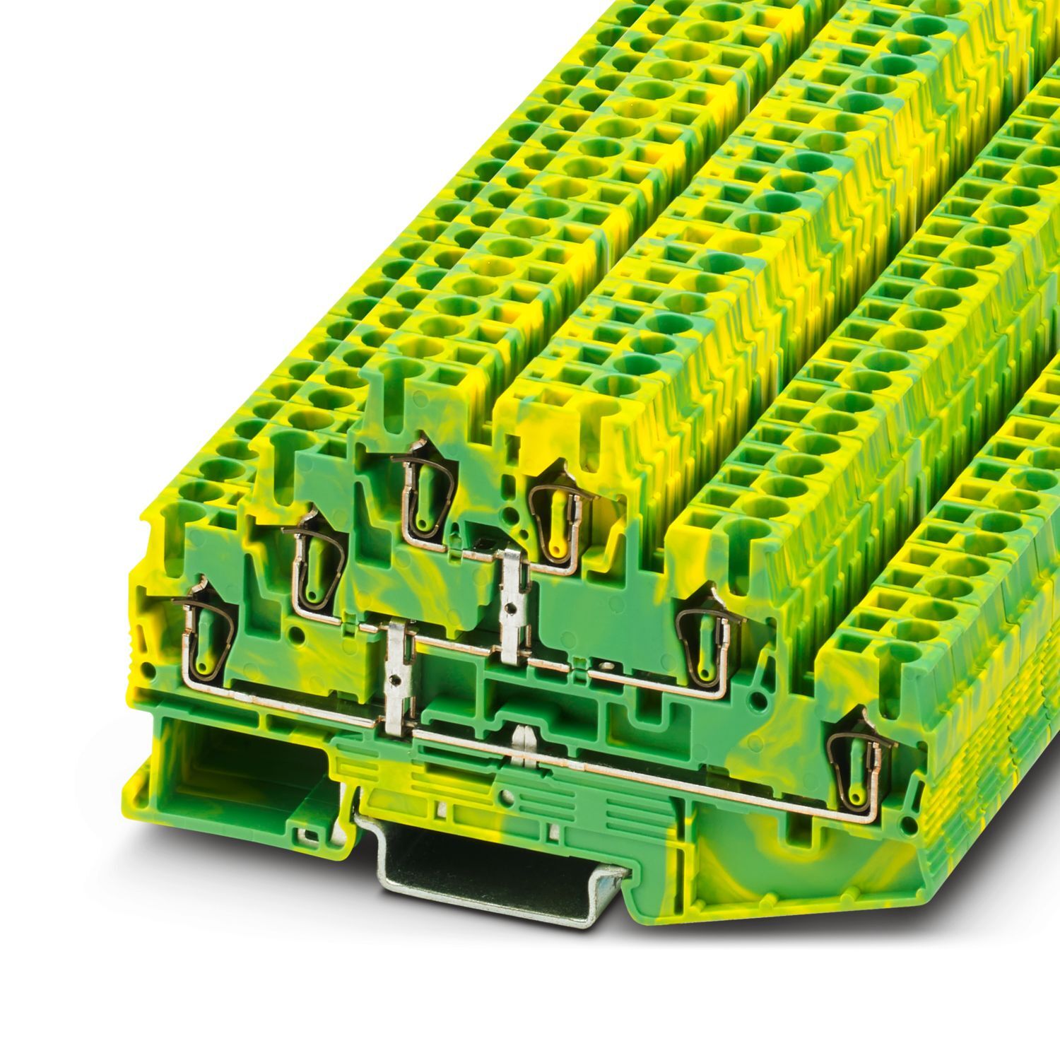 Заземляющий клеммный модуль с пружинными зажимами, количество точек подсоединения: 6, тип подключения: Пружинный зажим, 1., 2. и 3-ий ярус, cечение: 0,08 мм2 - 4 мм2, тип монтажа: NS 35/7,5, NS 35/15, цвет: желто-зел.
