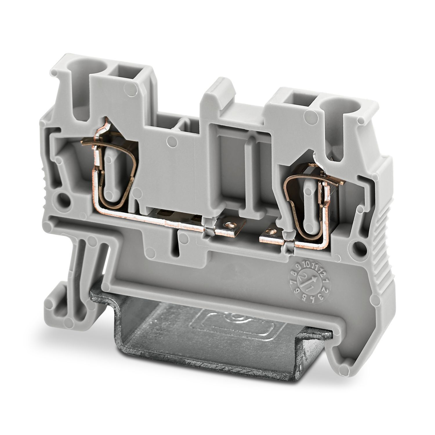 Проходные клеммы, для встраивания свободно выбираемых конструктивных элементов, номинальное напряжение: 800 В, номинальный ток: 24 A, количество точек подсоединения: 2, тип подключения: Пружинный зажим, Расчетное сечение: 2,5 мм2, 1. ярус, cечение: 0,08 мм2 - 4 мм2, тип монтажа: NS 35/7,5, NS 35/15, цвет: cерый