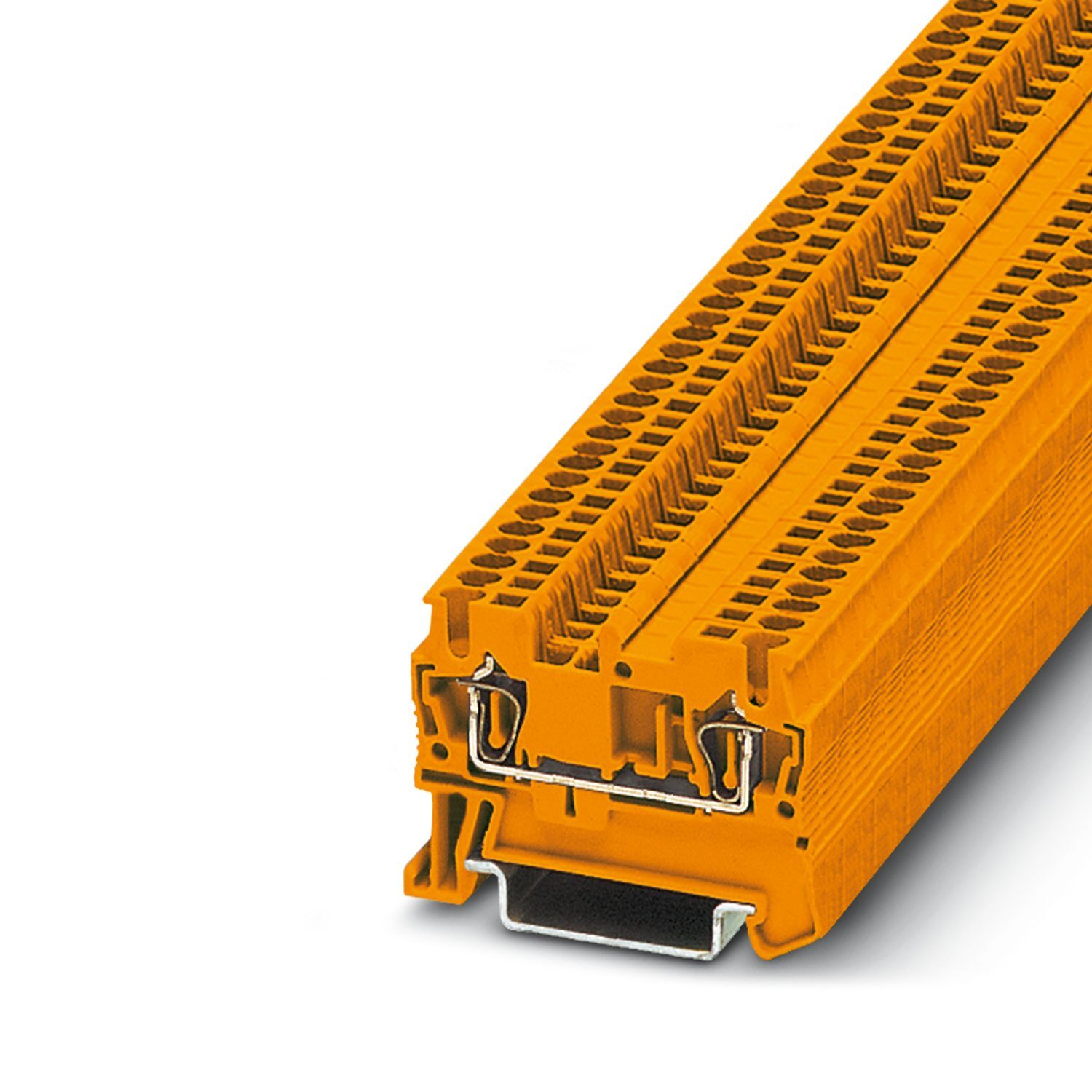 Проходные клеммы, номинальное напряжение: 500 В, номинальный ток: 17,5 A, количество точек подсоединения: 2, тип подключения: Пружинный зажим, Расчетное сечение: 1,5 мм2, 1. ярус, cечение: 0,08 мм2 - 1,5 мм2, тип монтажа: NS 35/7,5, NS 35/15, цвет: oранжевый