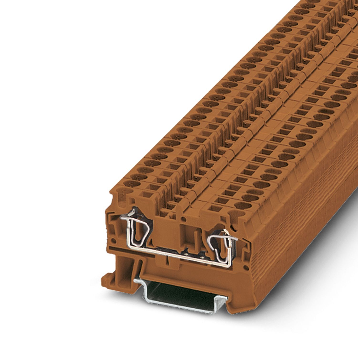 Проходные клеммы, номинальное напряжение: 800 В, номинальный ток: 32 A, количество точек подсоединения: 2, тип подключения: Пружинный зажим, Расчетное сечение: 4 мм2, 1. ярус, cечение: 0,08 мм2 - 6 мм2, тип монтажа: NS 35/7,5, NS 35/15, цвет: коричневый