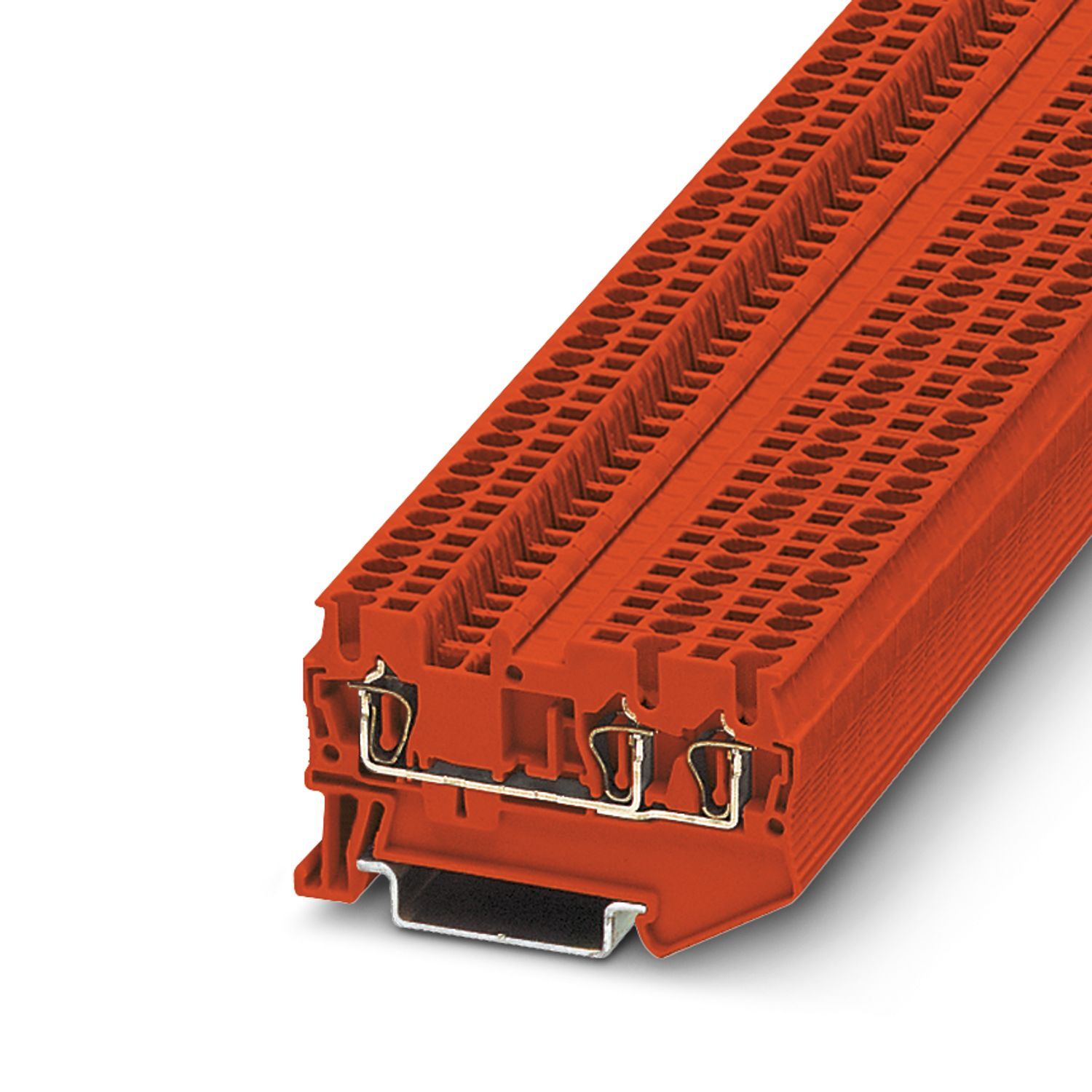 Проходные клеммы, номинальное напряжение: 500 В, номинальный ток: 17,5 A, количество точек подсоединения: 3, тип подключения: Пружинный зажим, Расчетное сечение: 1,5 мм2, cечение: 0,08 мм2 - 1,5 мм2, тип монтажа: NS 35/7,5, NS 35/15, цвет: красный
