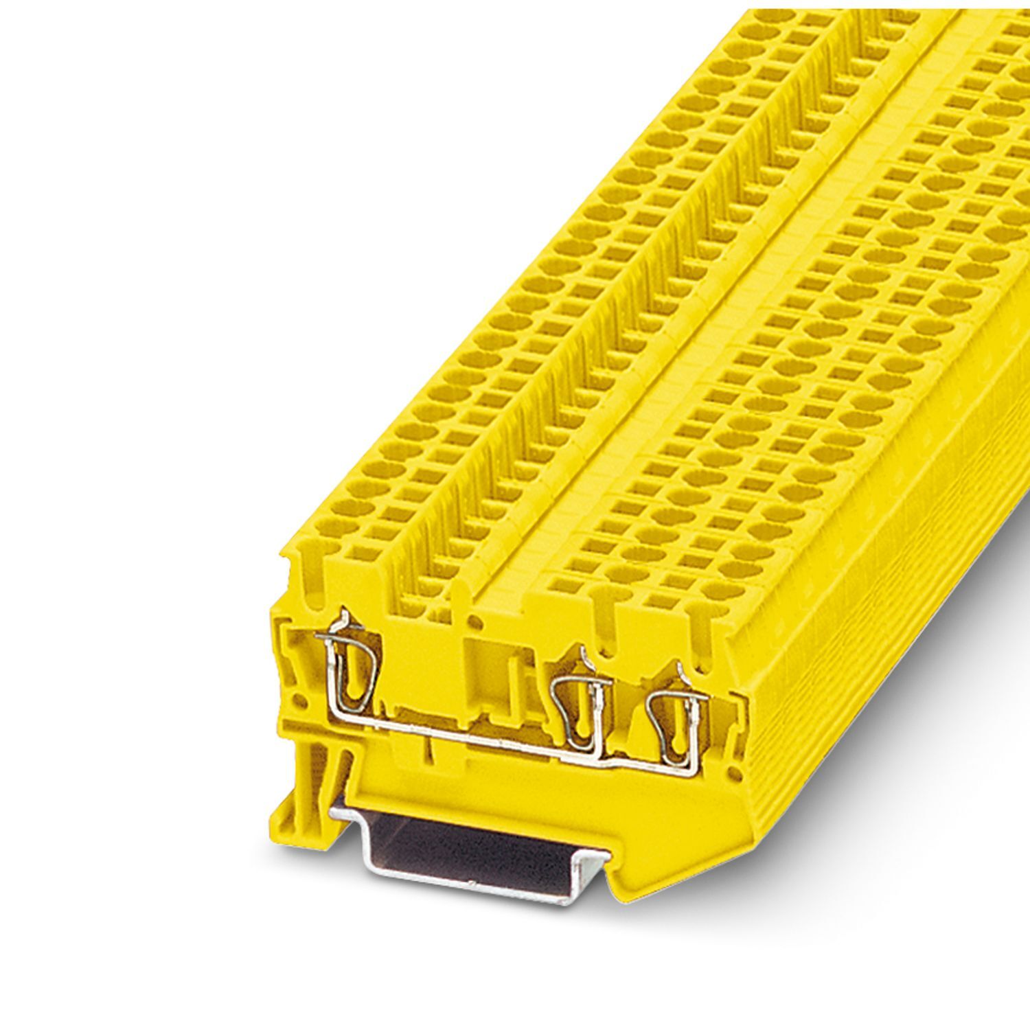 Проходные клеммы, номинальное напряжение: 800 В, номинальный ток: 24 A, количество точек подсоединения: 3, тип подключения: Пружинный зажим, Расчетное сечение: 2,5 мм2, cечение: 0,08 мм2 - 4 мм2, тип монтажа: NS 35/7,5, NS 35/15, цвет: желтый