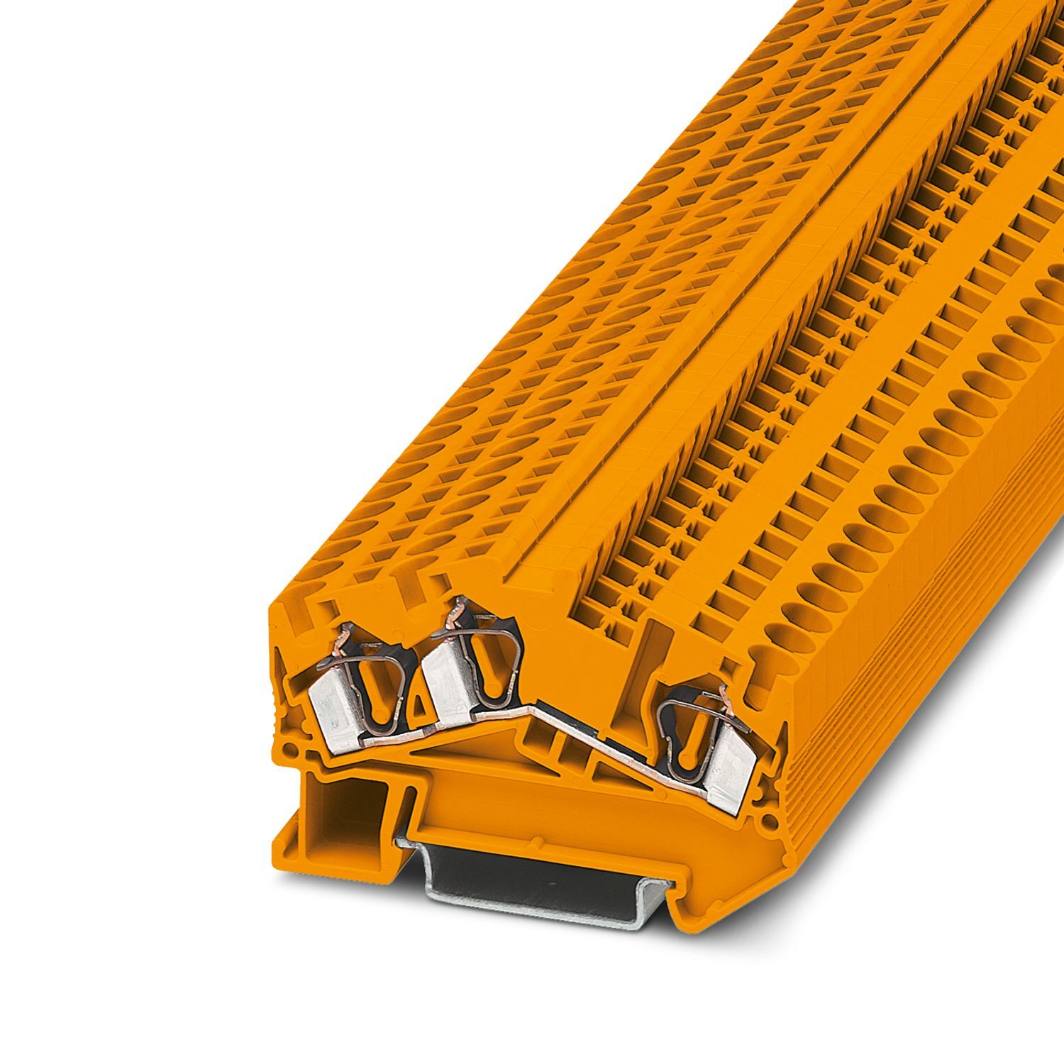 Проходные клеммы, номинальное напряжение: 800 В, номинальный ток: 32 A, количество точек подсоединения: 3, тип подключения: Пружинный зажим, Расчетное сечение: 4 мм2, 1. ярус, cечение: 0,08 мм2 - 6 мм2, тип монтажа: NS 35/7,5, NS 35/15, цвет: oранжевый