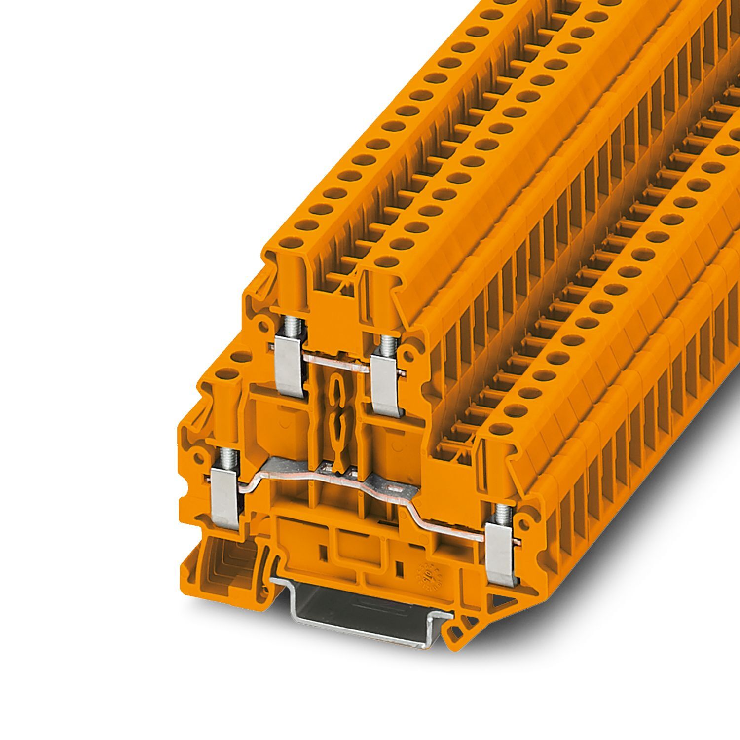 Двухъярусные клеммы, номинальное напряжение: 500 В, номинальный ток: 24 A, тип подключения: Винтовые зажимы, Расчетное сечение: 2,5 мм2, cечение: 0,14 мм2 - 4 мм2, тип монтажа: NS 35/7,5, NS 35/15, цвет: oранжевый