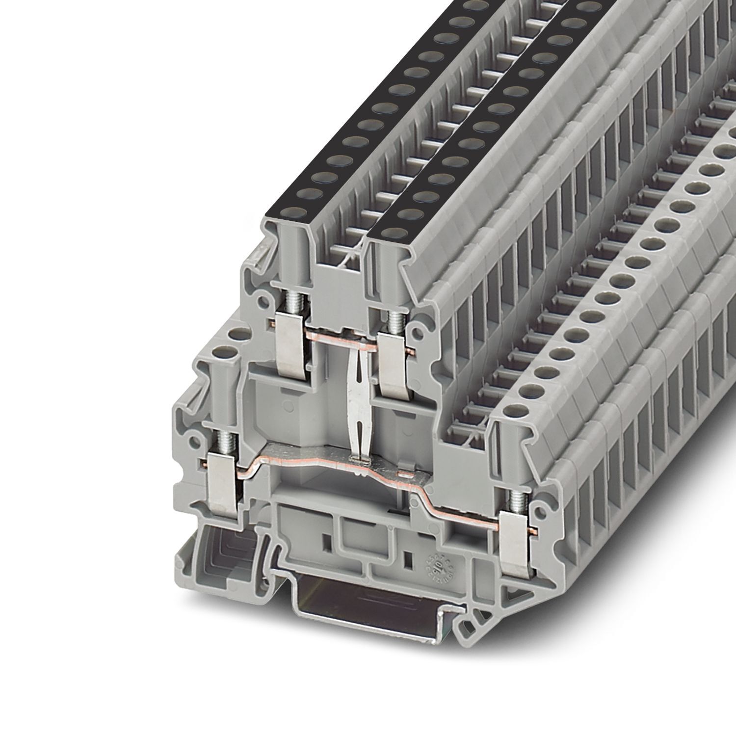 Двухъярусные клеммы, с потенциальным разъемом, номинальное напряжение: 500 В, номинальный ток: 24 A, тип подключения: Винтовые зажимы, Расчетное сечение: 2,5 мм2, cечение: 0,14 мм2 - 4 мм2, тип монтажа: NS 35/7,5, NS 35/15, цвет: cерый