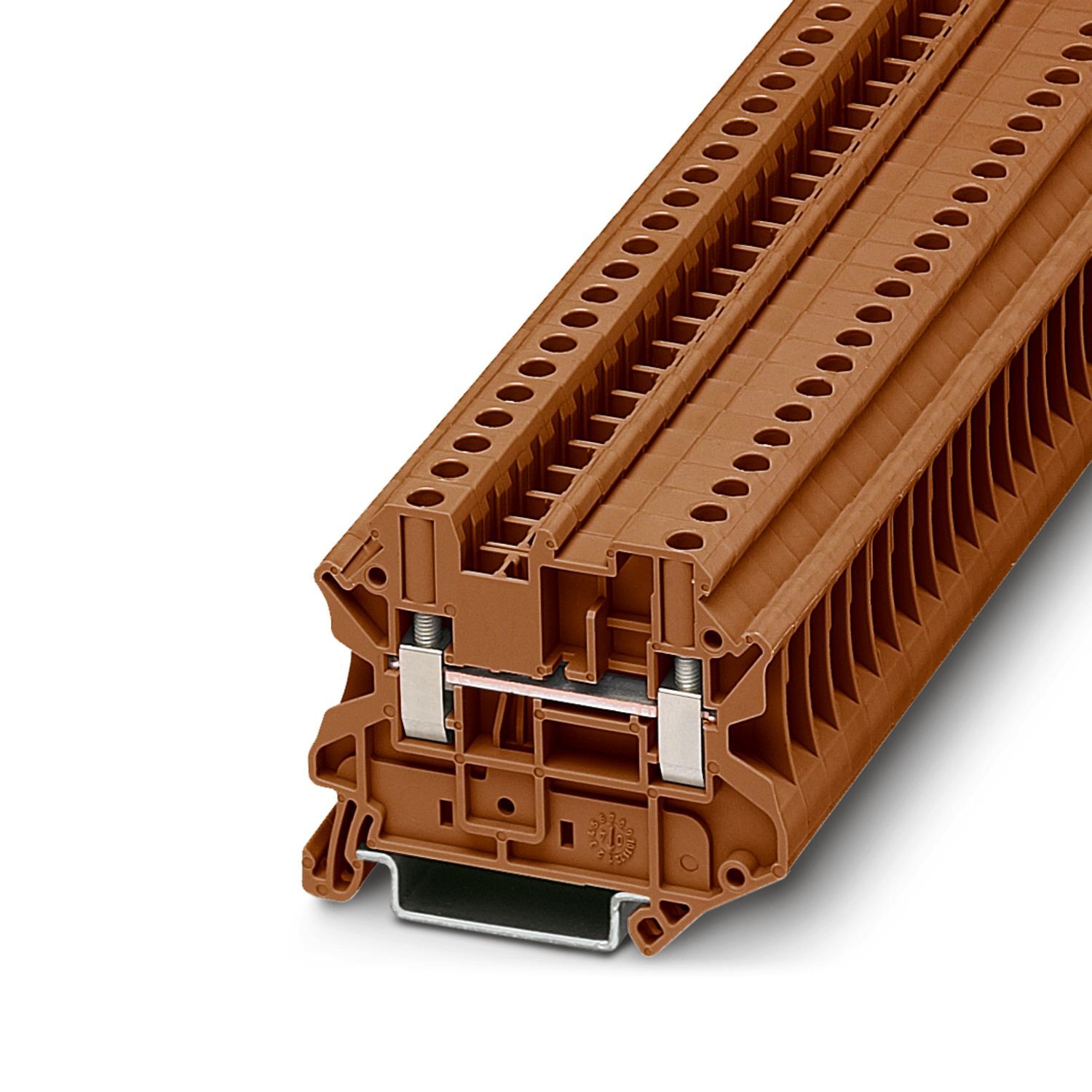Проходные клеммы, номинальное напряжение: 800 В, номинальный ток: 32 A, количество точек подсоединения: 2, полюсов: 1, тип подключения: Винтовые зажимы, Расчетное сечение: 4 мм2, cечение: 0,14 мм2 - 6 мм2, тип монтажа: NS 35/7,5, NS 35/15, цвет: коричневый