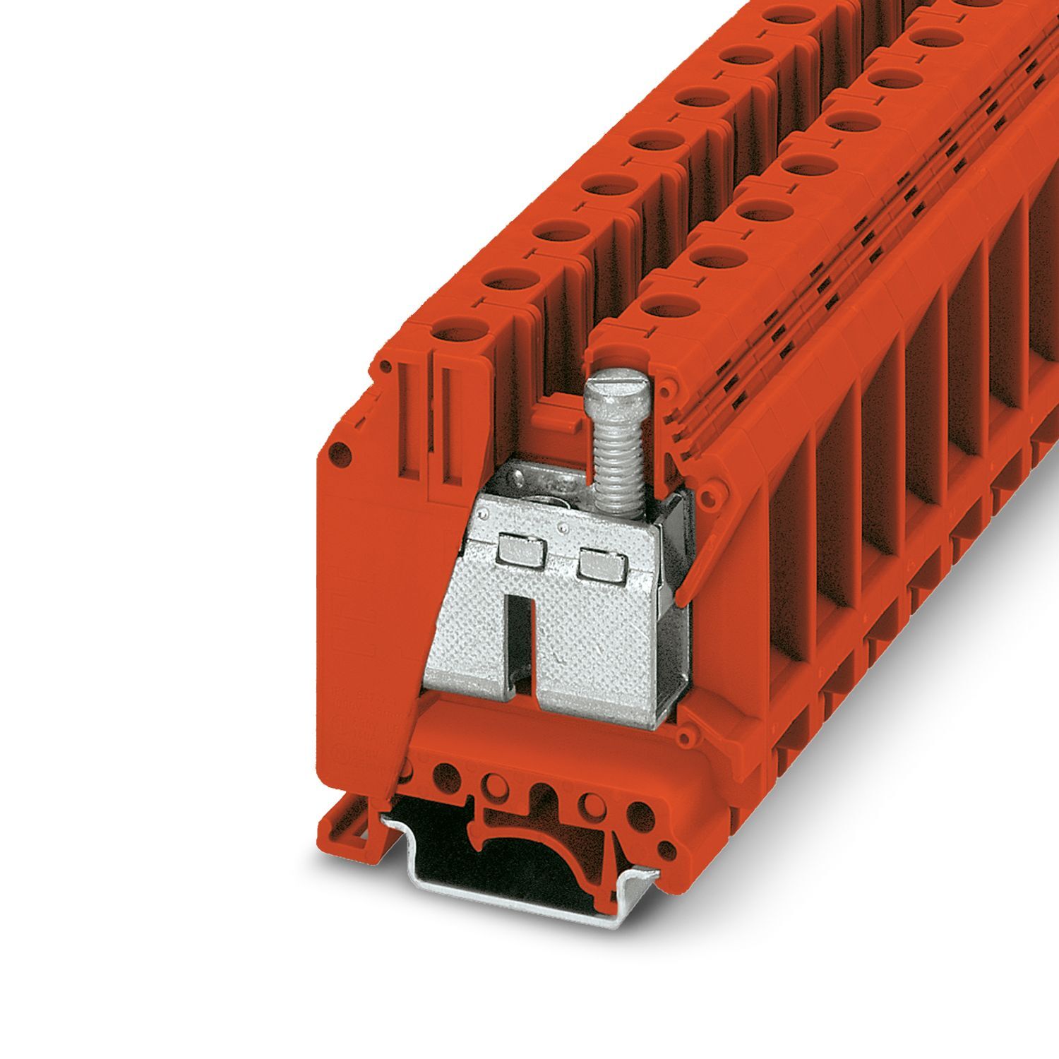 Проходные клеммы, номинальное напряжение: 1000 В, номинальный ток: 125 A, количество точек подсоединения: 2, полюсов: 1, тип подключения: Винтовые зажимы, cечение: 0,75 мм2 - 50 мм2, тип монтажа: NS 35/7,5, NS 35/15, NS 32, цвет: красный