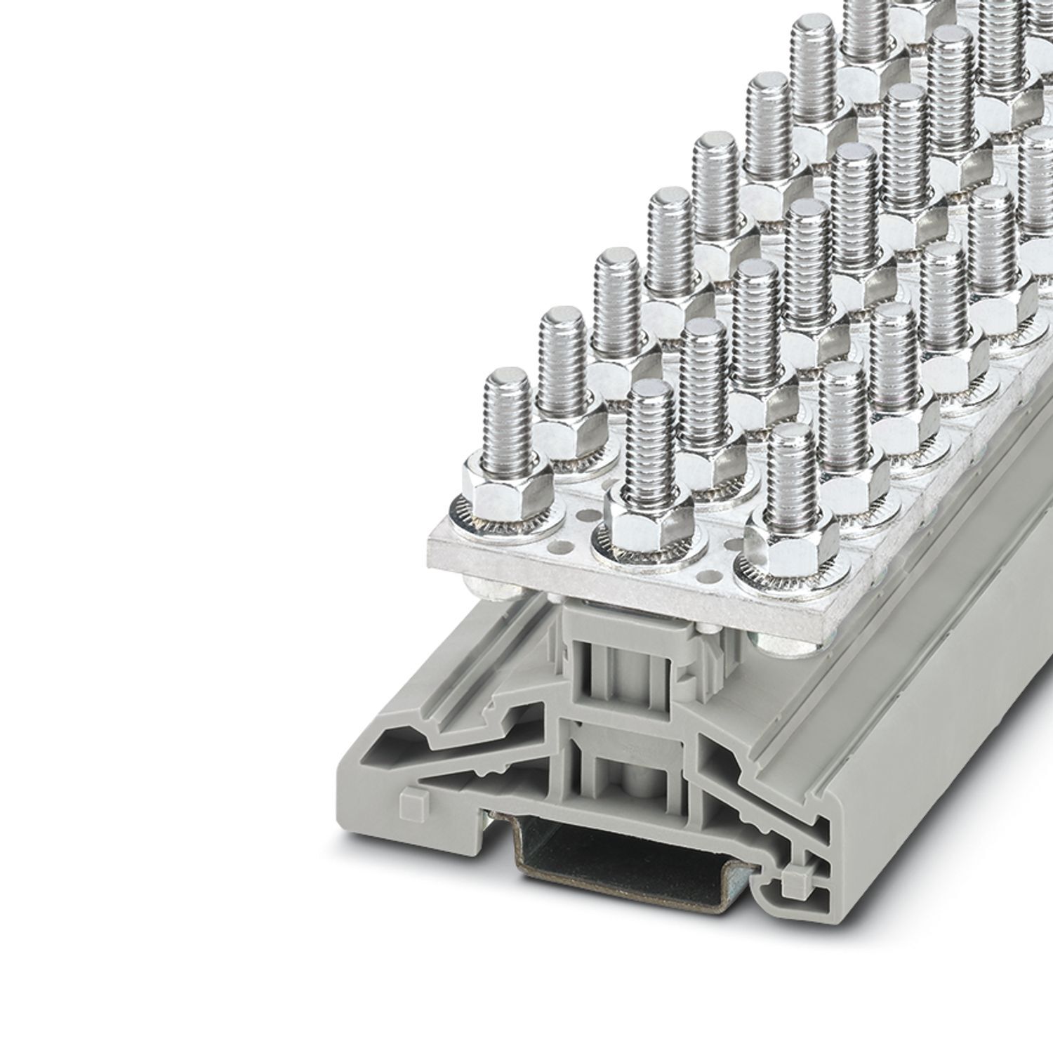 Сильноточные клеммы, номинальное напряжение: 1000 В, номинальный ток: 125 A, количество точек подсоединения: 2, тип подключения: Болтовые клеммы, Расчетное сечение: 35 мм2, тип монтажа: NS 35/7,5, NS 35/15, цвет: cерый