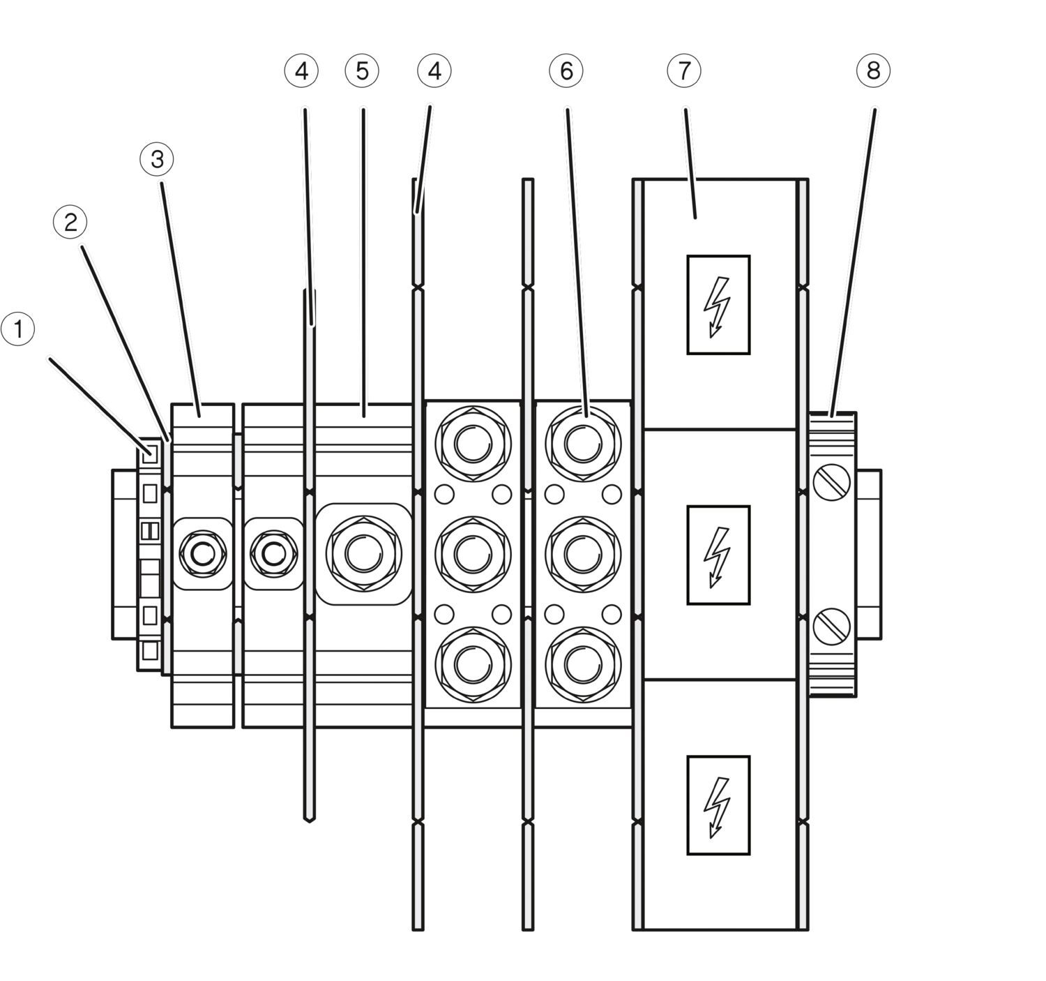 Широкий ассортимент принадлежностей для удобного подключения проводов сечением до 120 мм²|Для семейства одно- и двухболтовых клемм применяются две разные разделительные пластины|Для разветвления цепей используются 2- и 3-контактные соединительные шины|Надежное подключение до 4 проводов с кабельными наконечниками, соответствующими требованиям DIN 46234, 46235 и 46237, в крайне ограниченных монтажных условиях|Пружинная шайба защищает шестигранную гайку от саморазвинчивания|Для установки соединительных шин необходимо просто вынуть предусмотренное в разделительной пластине окошко