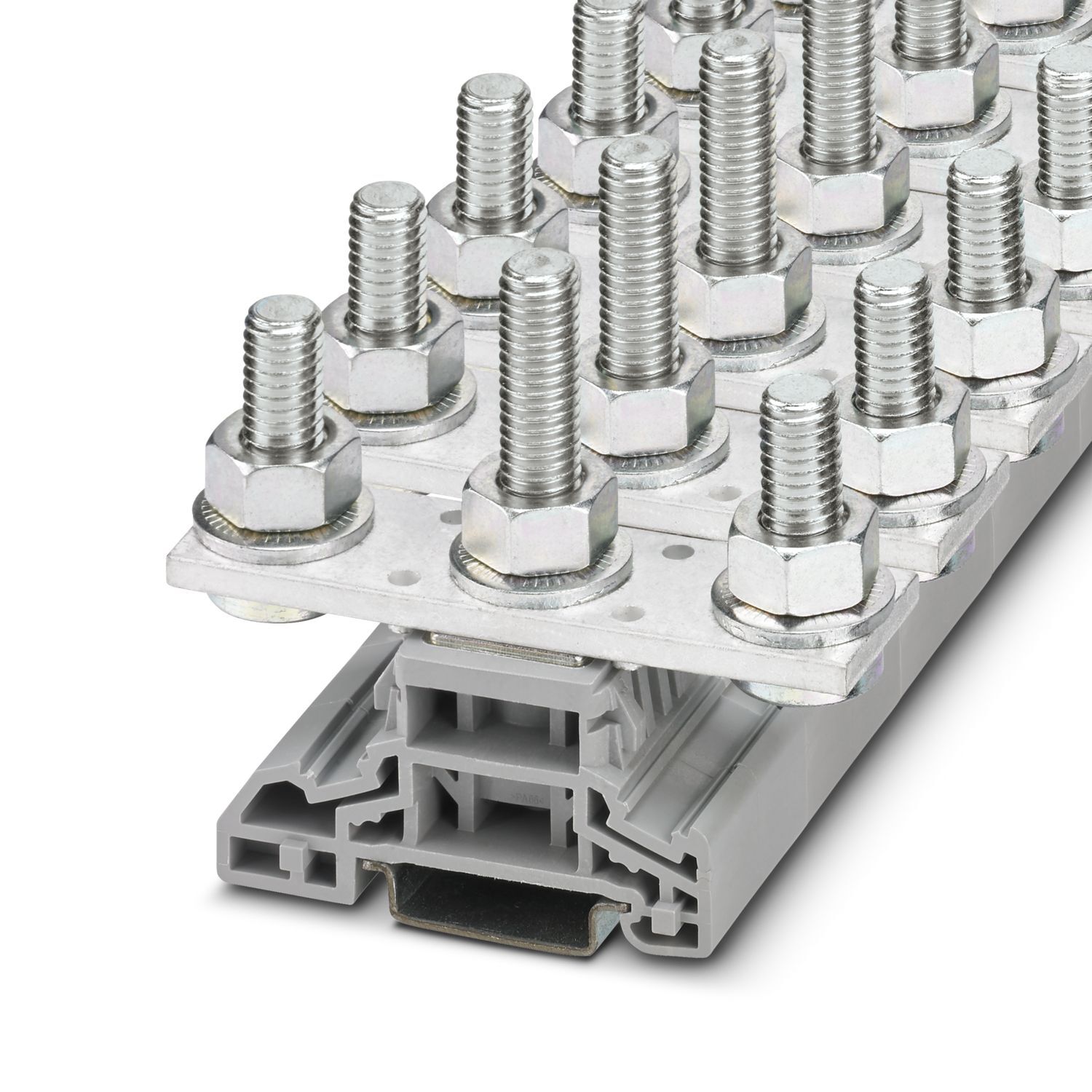 Широкий ассортимент принадлежностей для удобного подключения проводов сечением до 120 мм²|Для семейства одно- и двухболтовых клемм применяются две разные разделительные пластины|Для разветвления цепей используются 2- и 3-контактные соединительные шины|Надежное подключение до 4 проводов с кабельными наконечниками, соответствующими требованиям DIN 46234, 46235 и 46237, в крайне ограниченных монтажных условиях|Пружинная шайба защищает шестигранную гайку от саморазвинчивания|Для установки соединительных шин необходимо просто вынуть предусмотренное в разделительной пластине окошко