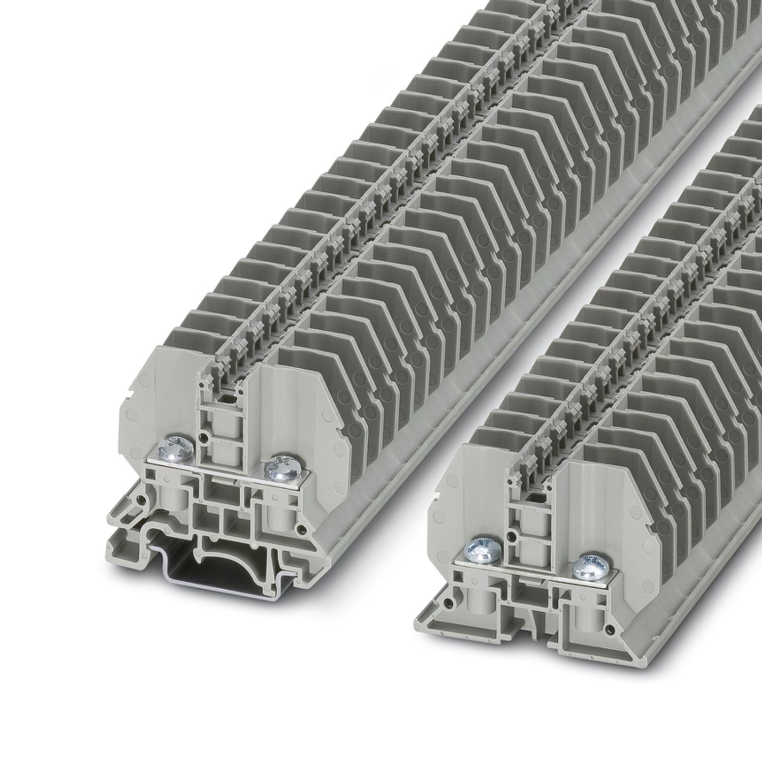 Нанесение больших надписей и сплошной маркировки на внешней стороне и в центре клемм|Монтаж на обычных несущих рейках или прямо в распределительной коробке|Компактное винтовое соединение с помощью кольцевых или вилочных кабельных наконечников|Гайки и токопроводящие элементы зафиксированы в изолирующем корпусе, что предотвращает возможность утери|Устанавливаемый непосредственно на клеммы защитный профиль обеспечивает защиту от прикосновений|Изолирующая перемычка с мостиковым контактом позволяет выполнять коммутируемые поперечные соединения, при этом винт перемычки служит токопроводящим коммутационным звеном|Гнездо для перемычки служит для разветвления цепи при помощи стандартной винтовой перемычки