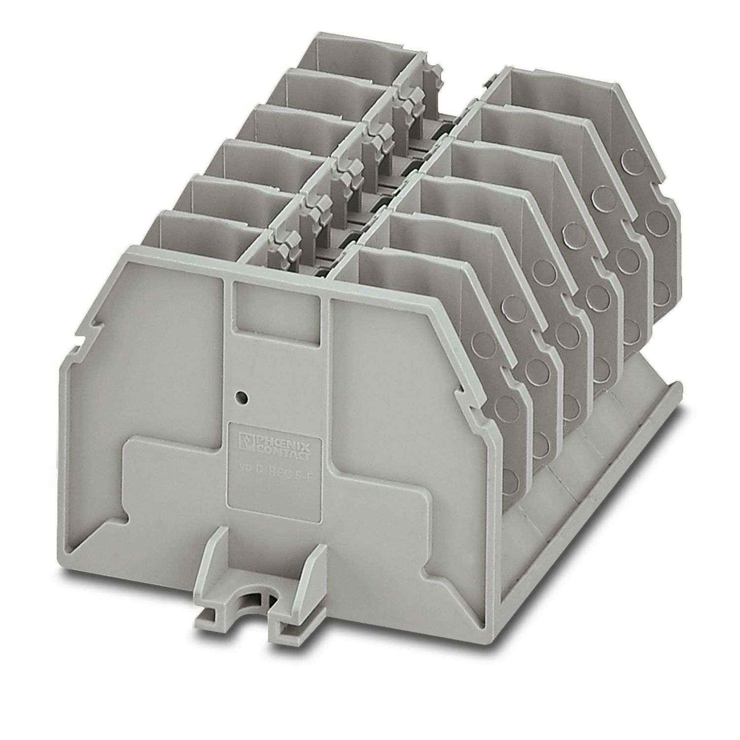 Монтаж на обычных несущих рейках или прямо в распределительной коробке|Нанесение больших надписей и сплошной маркировки на внешней стороне и в центре клемм|Компактное винтовое соединение с помощью кольцевых или вилочных кабельных наконечников|Устанавливаемый непосредственно на клеммы защитный профиль обеспечивает защиту от прикосновений|Гайки и токопроводящие элементы зафиксированы в изолирующем корпусе, что предотвращает возможность утери|Изолирующая перемычка с мостиковым контактом позволяет выполнять коммутируемые поперечные соединения, при этом винт перемычки служит токопроводящим коммутационным звеном|Гнездо для перемычки служит для разветвления цепи при помощи стандартной винтовой перемычки